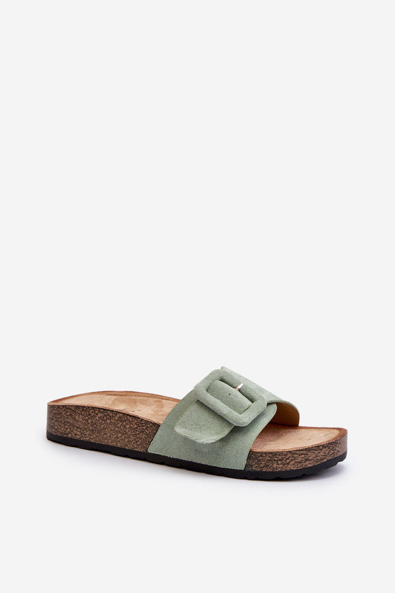 Klapki Eko Zamszowe Klamra Damskie Miętowe Laeltia XZ-001