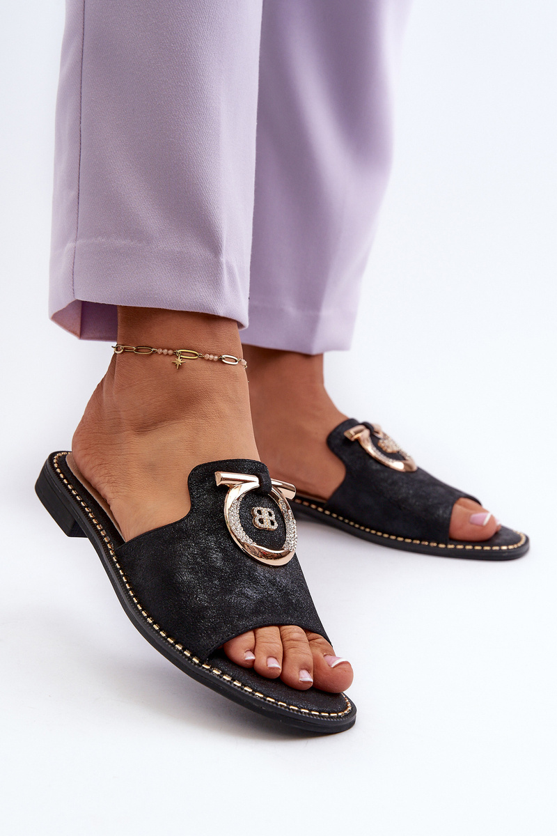 Klapki Eleganckie Błyszczące Z Ozdobą Damskie Czarne S.Barski KV27-032