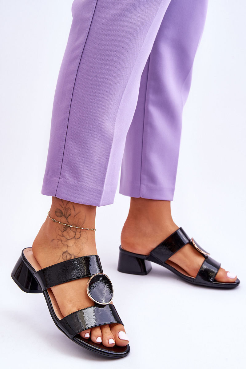 Klapki Eleganckie Obcas Czarne Sergio Leone KL310