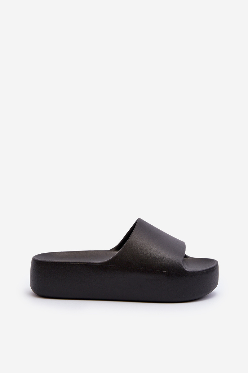 Klapki Gładkie Damskie Klasyczne Na Masywnej Podeszwie Czarne Oreithano