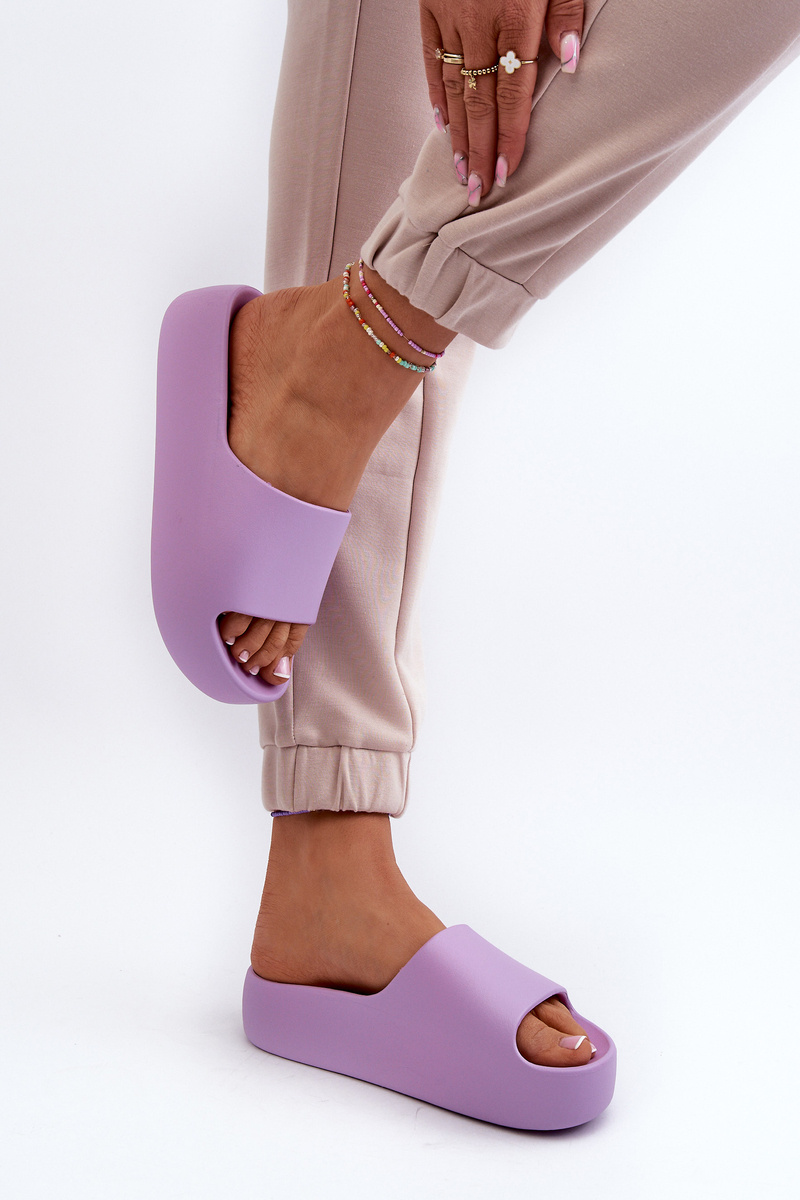 Klapki Gładkie Damskie Klasyczne Na Masywnej Podeszwie Fioletowe Oreithano
