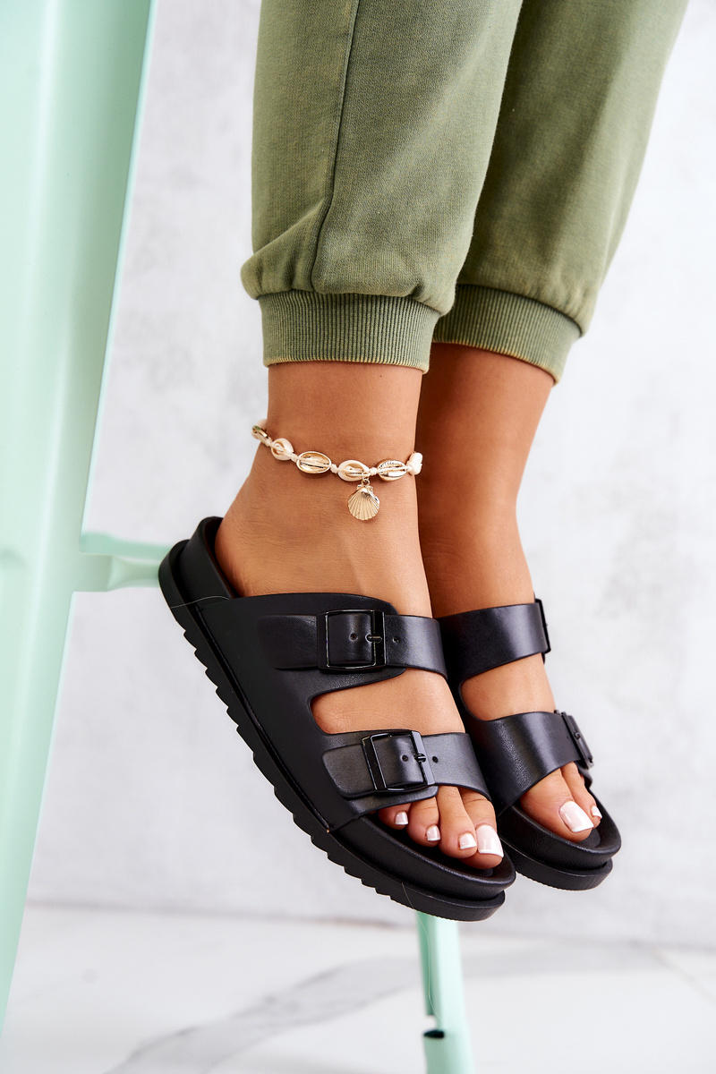 Klapki Gumowe Wygodne Ze Sprzączką Czarne Corina