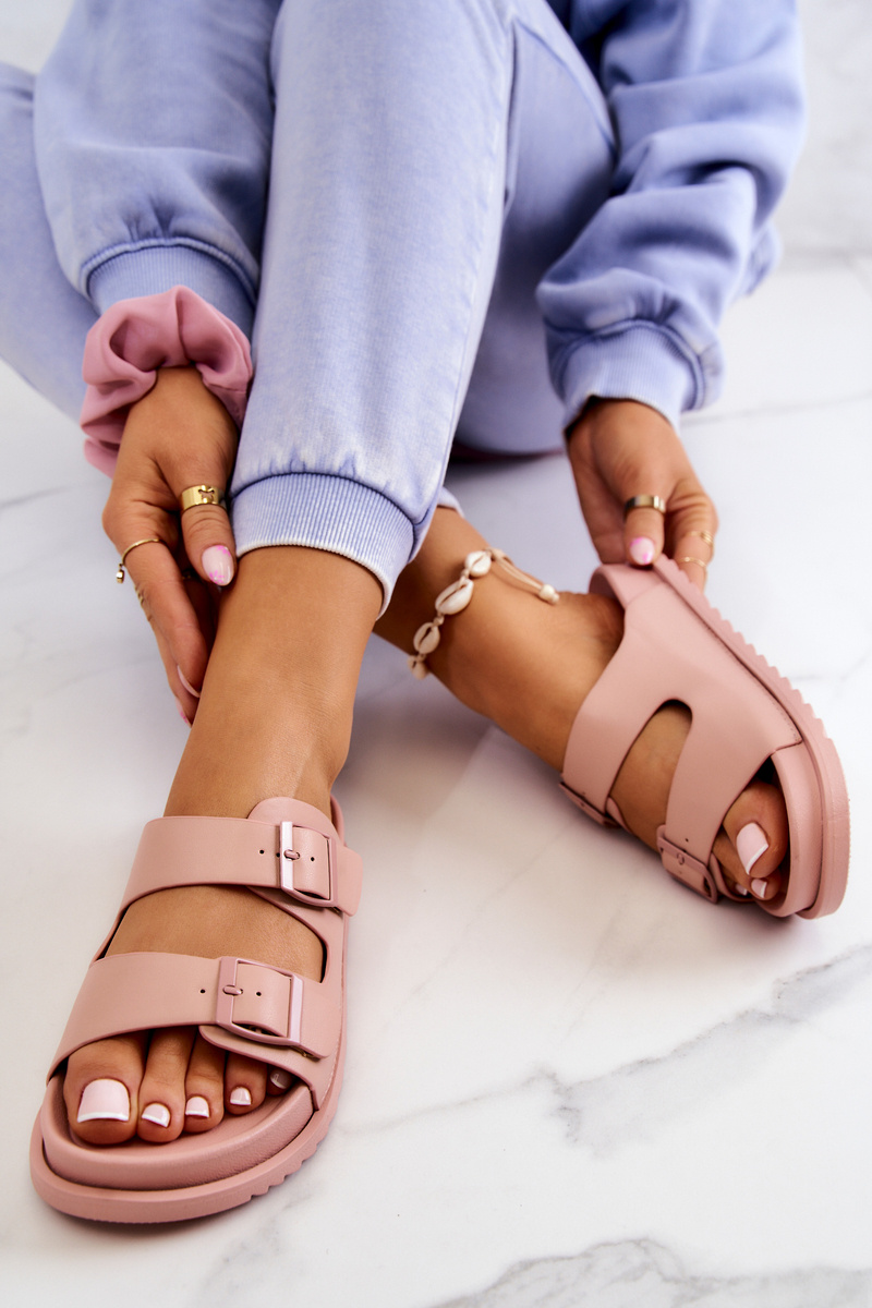 Klapki Gumowe Wygodne Ze Sprzączką Różowe Corina