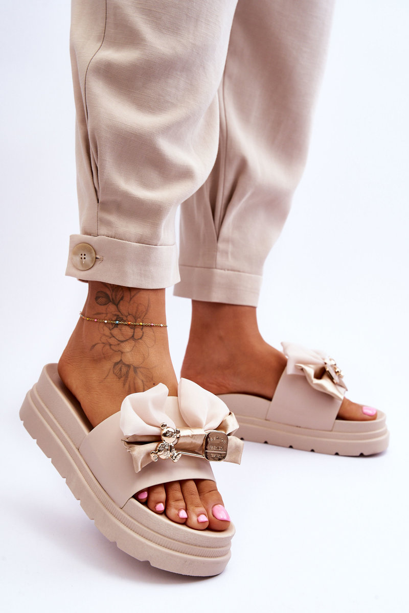 Klapki Kokarda Ozdobny Miś Beżowe Suzy