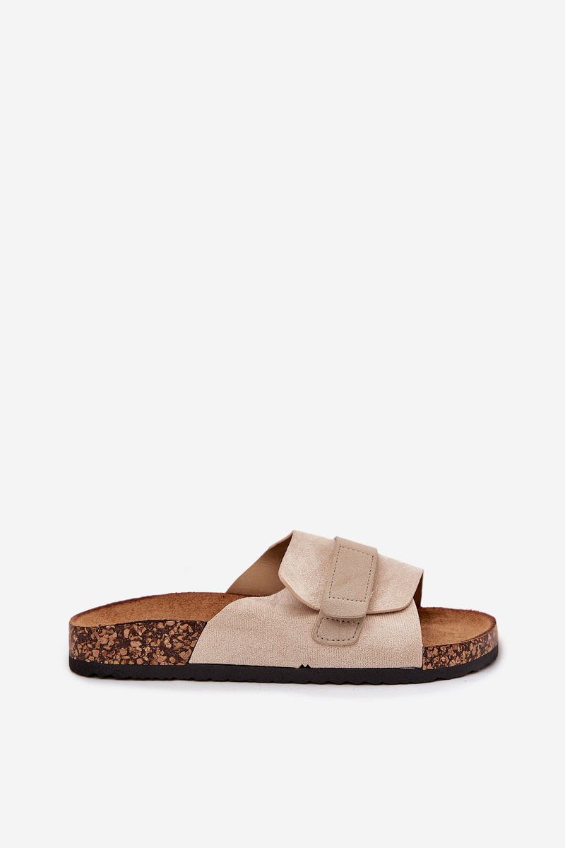 Klasyczne klapki o modnym fasonie pasują do wielu stylizacji! Idealne dla każdej kobiety ceniącej sobie komfort i wygodę na co dzień. Idealne na cieplejsze dni. Klapki z eko zamszu na korkowej platformie to świetny wybór na letnie dni. Profilowana wkładka gwarantuje komfort przez cały dzień, a pasek zapinany na rzep pozwala na wygodne dopasowanie do stopy. Korkowa platforma wprowadza lekkość i modny akcent, sprawiając, że te klapki doskonale komponują się z codziennymi stylizacjami.