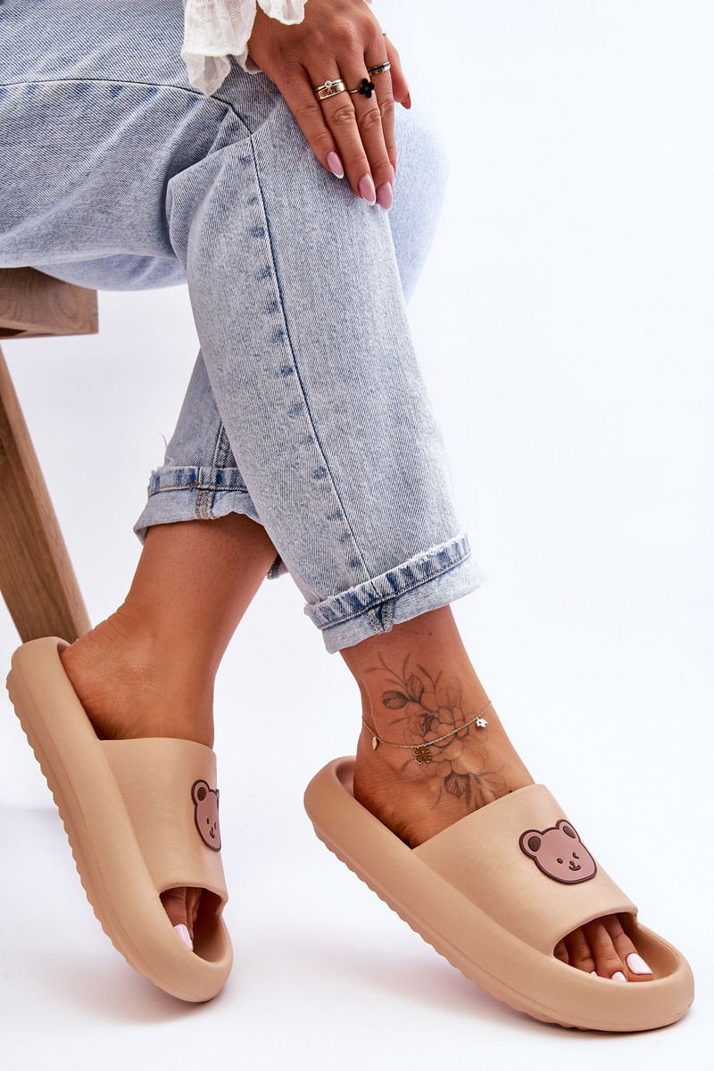 Klapki Lekkie Damskie Piankowe Miś Beżowe Lia BG-130