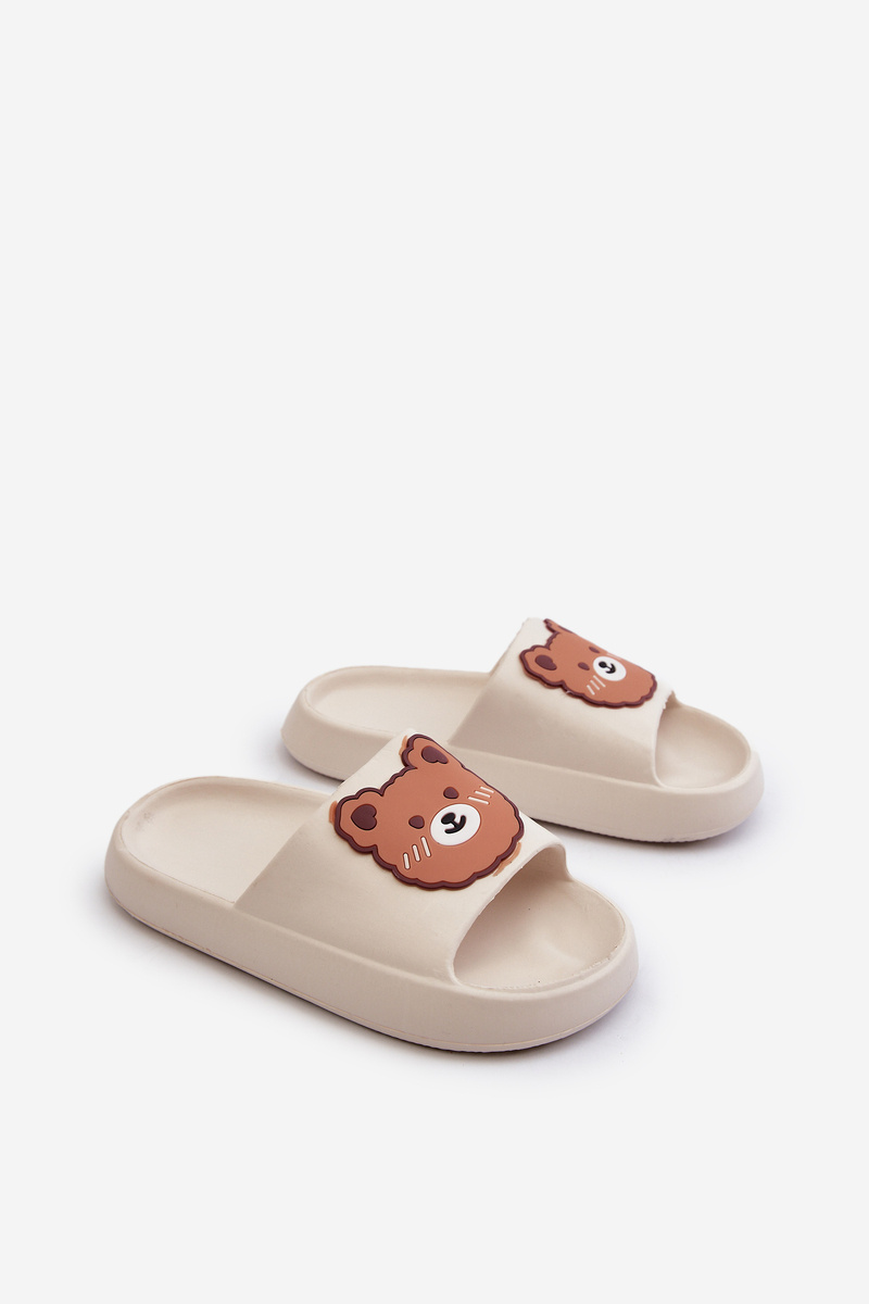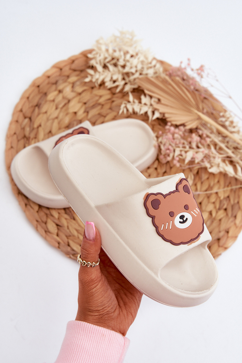 Klapki Lekkie Dziecięce Miś Białe Lindeheta M377
