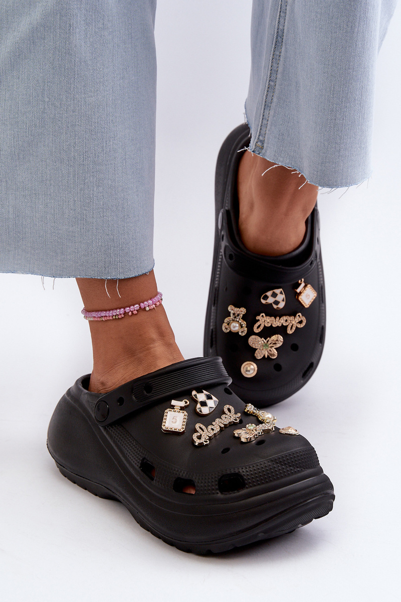 Klapki Lekkie Piankowe Na Grubej Podeszwie Z Przypinkami Czarne Effiora