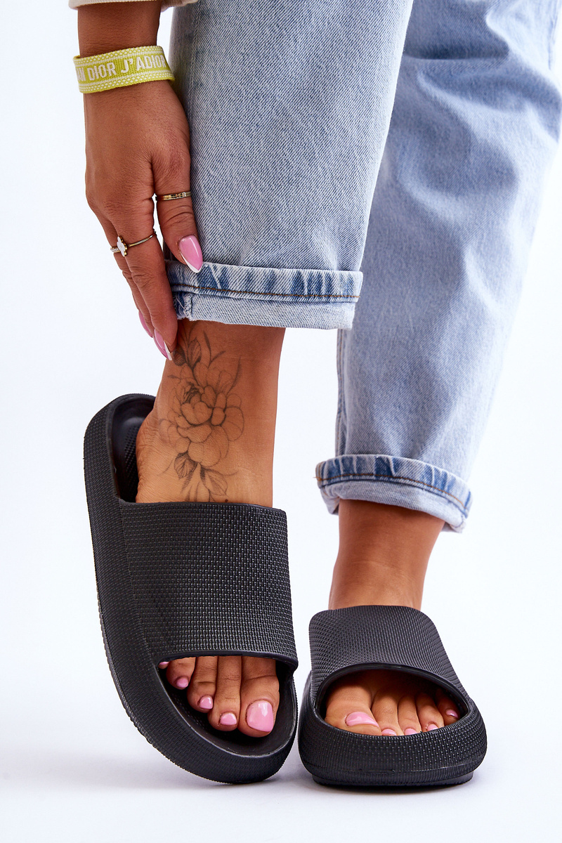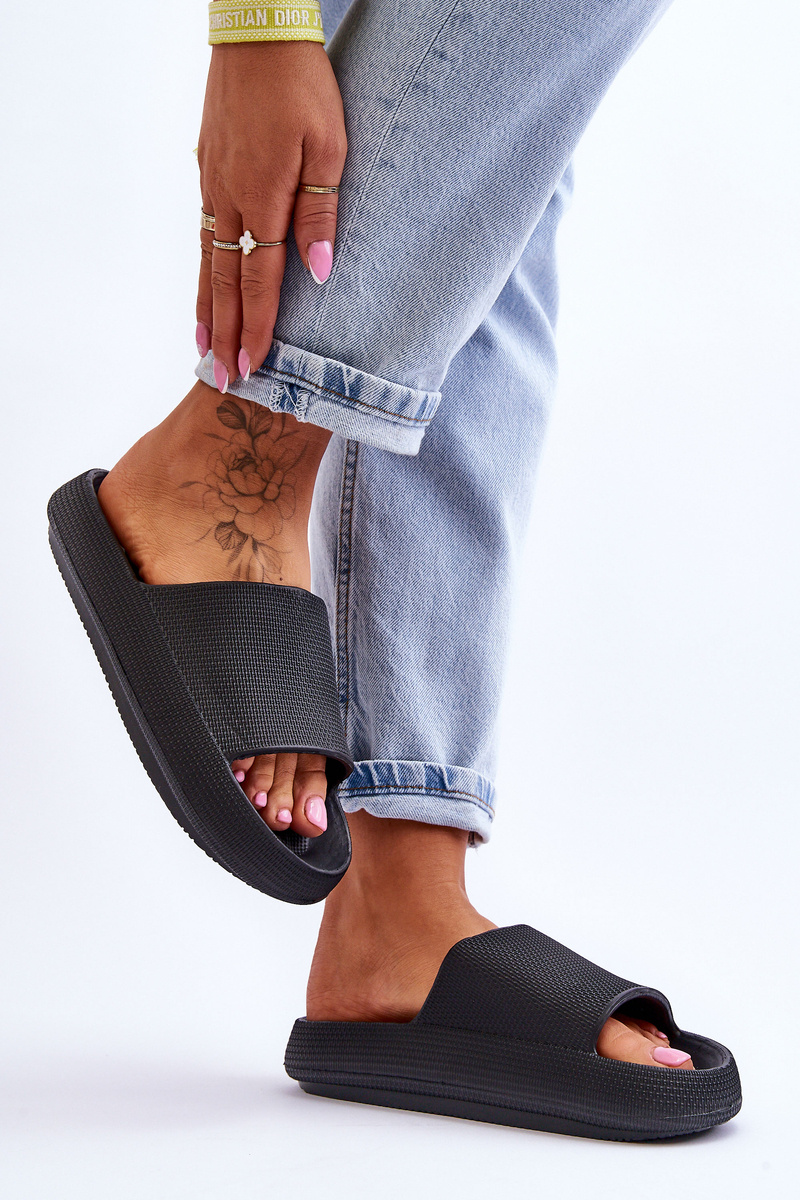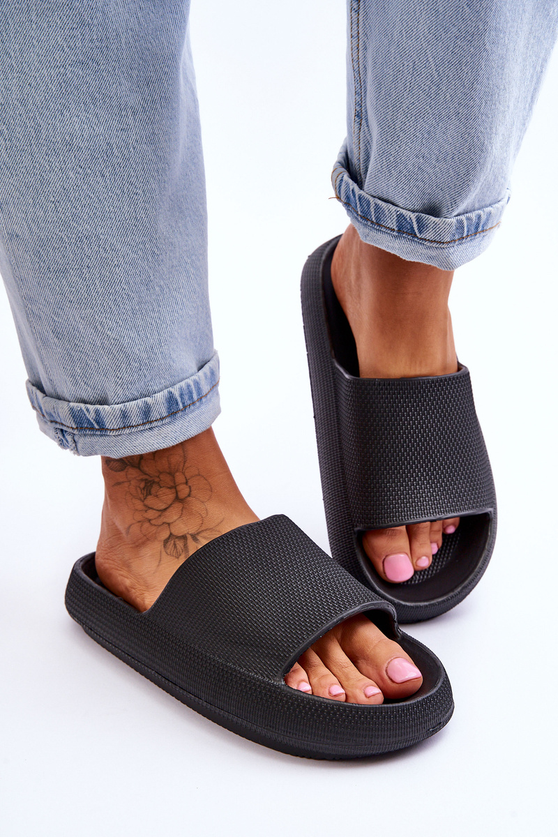 Klapki Modne Lekkie Masywna Podeszwa Czarne Rebel