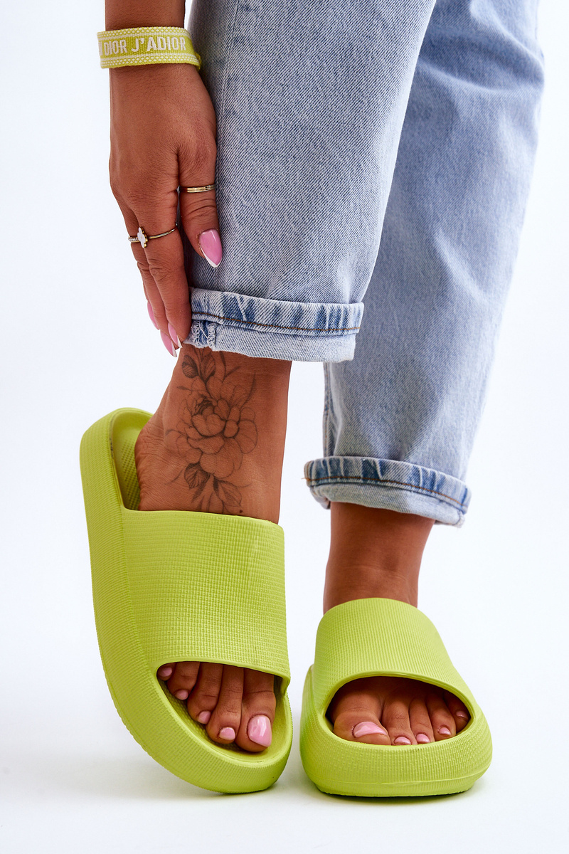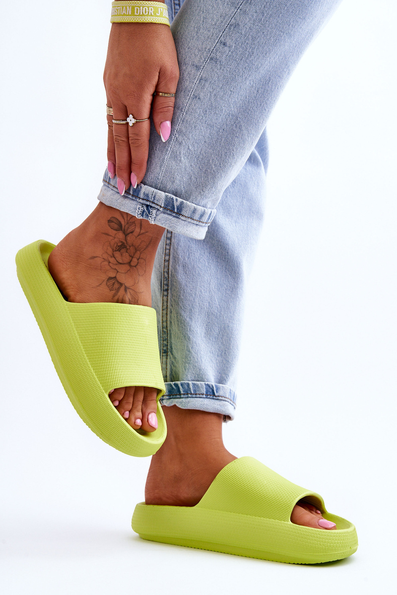 Klapki Modne Lekkie Masywna Podeszwa Limonkowe Rebel