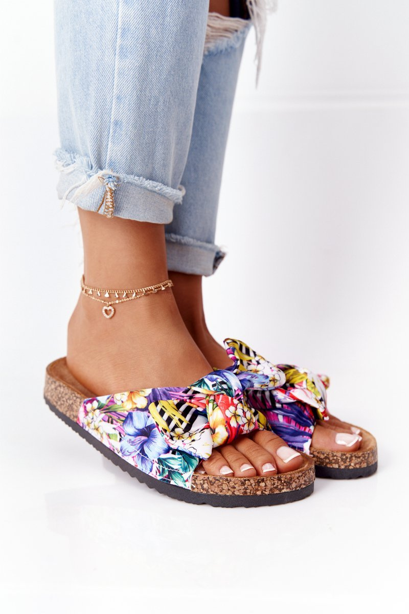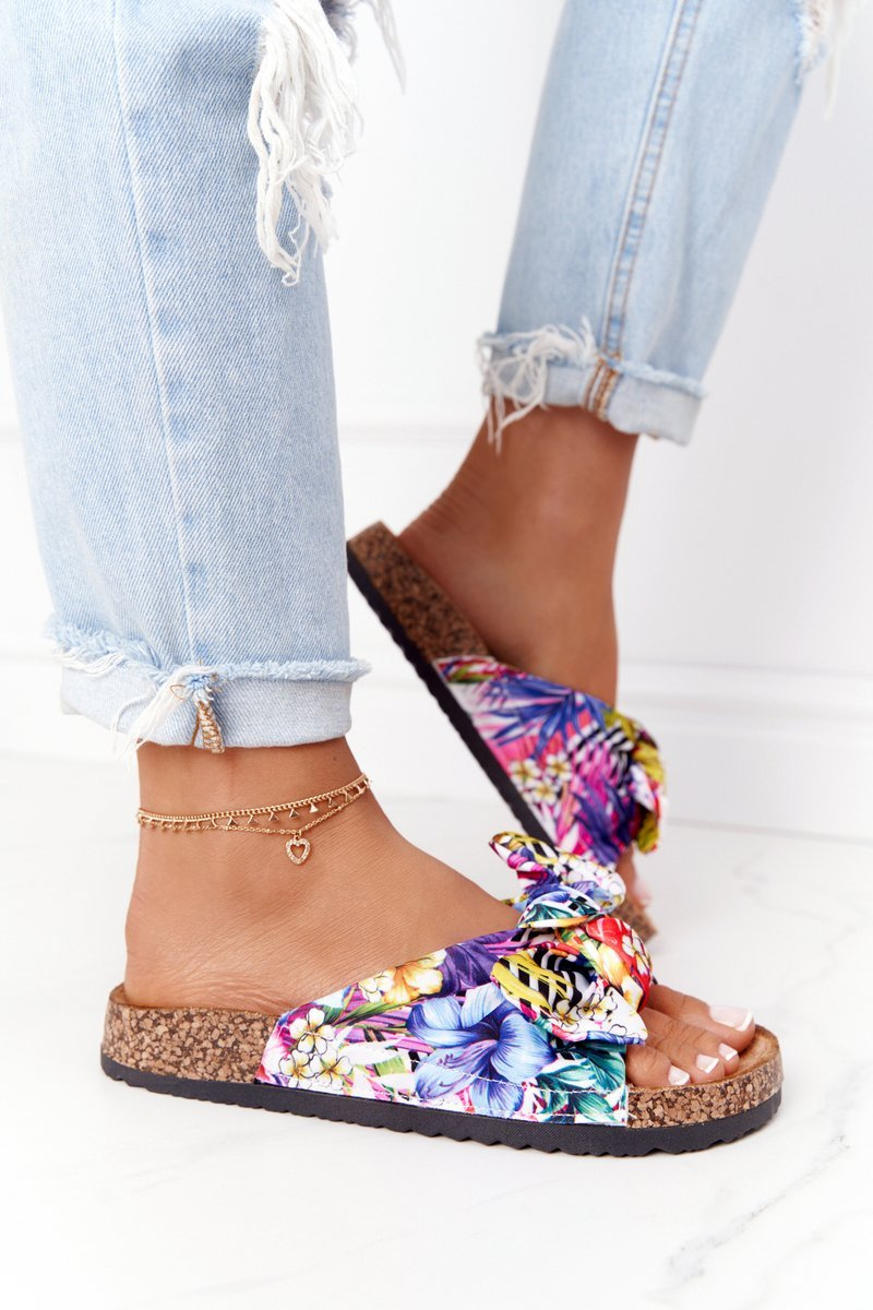 Klapki Na Korkowej Podeszwie Białe W Kwiaty Wendy