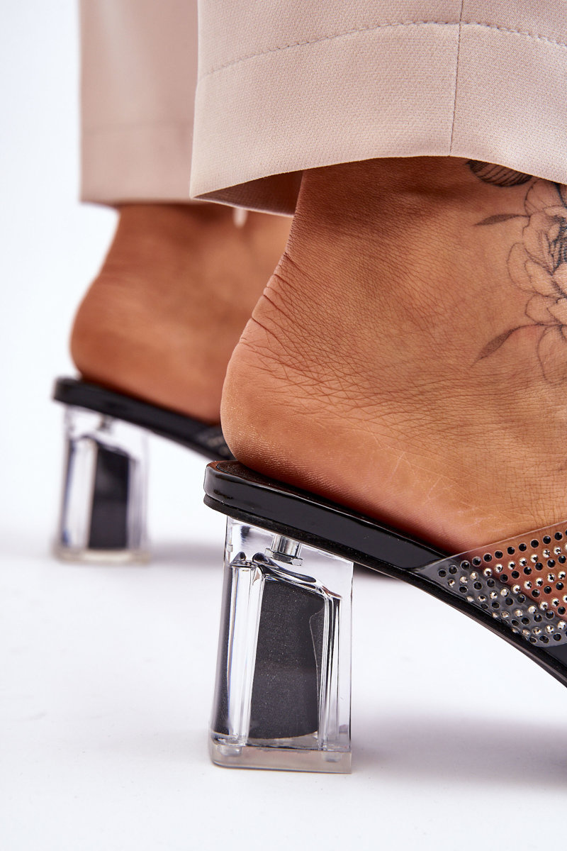 Klapki Obcas Dżety Cyrkonie Czarne Jaxen