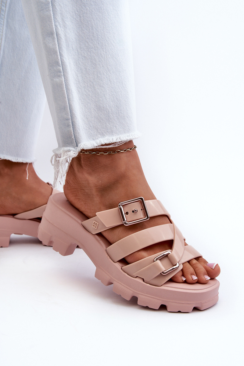 Opinie o Klapki Pachnące Damskie Na Niskim Obcasie Jasnoróżowe ZAXY NN285044
