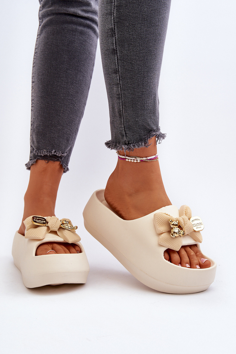 Klapki Piankowe Damskie Kokarda Beżowe Salessa BG155