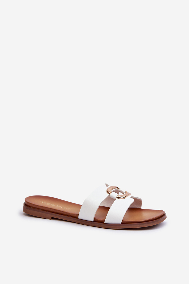 Klapki Płaskie Damskie Eko Skóra Białe Sergio Leone SK077H