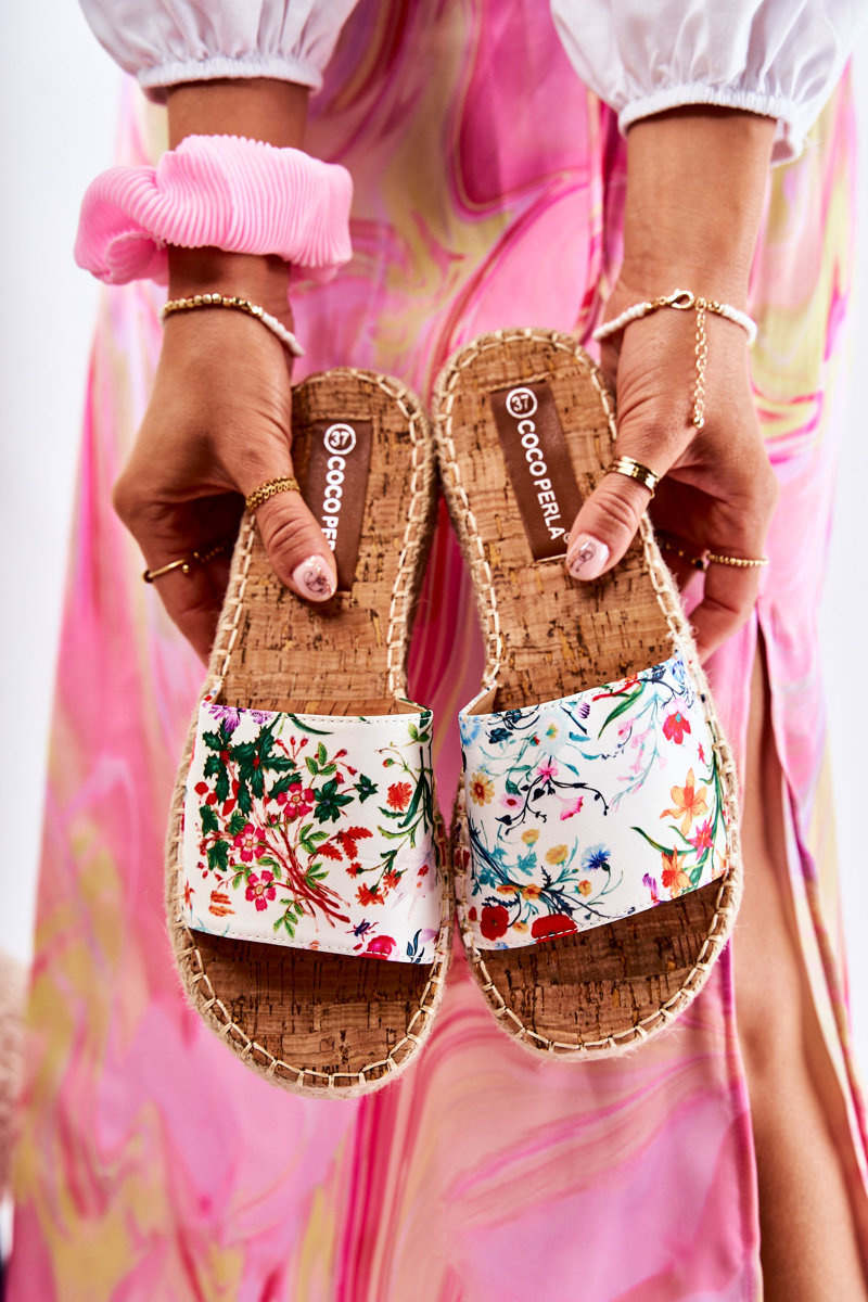 Klapki Platforma Kwiaty Białe Malia