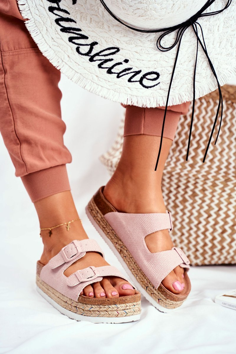 Klapki Pleciona Platforma Big Star Różowe FF274669