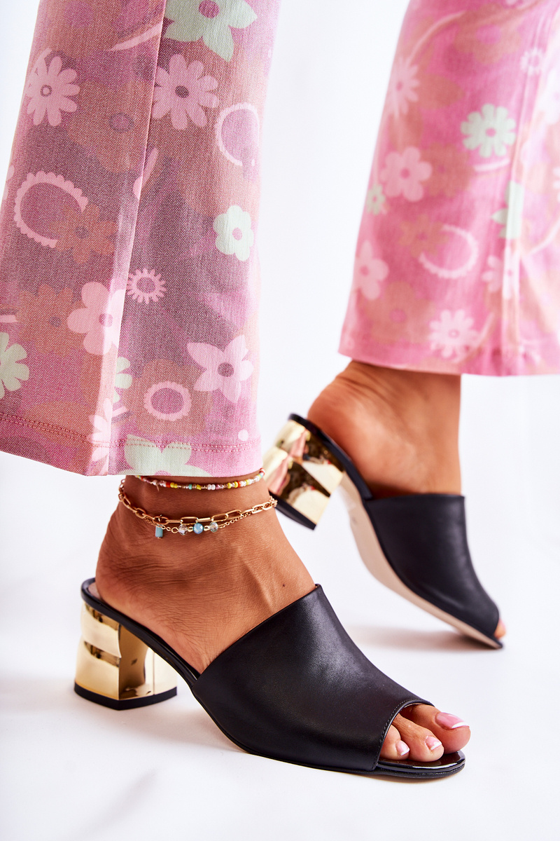Opinie o Klapki Skóra Damskie Obcas Czarne Perry