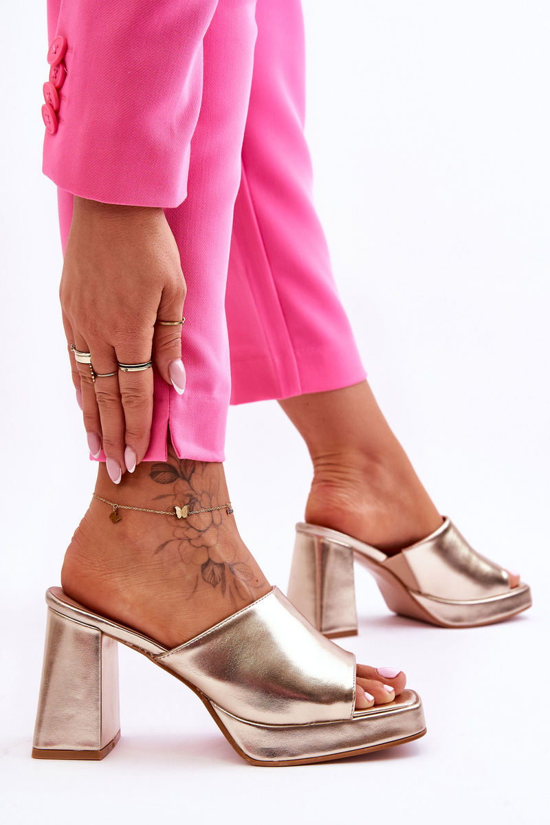 Opinie o Klapki Skóra Obcas Złote Livesa M051