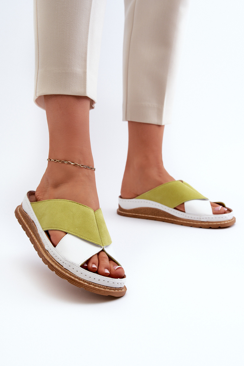 Klapki Skóra Profilowane Limonkowe Maciejka 04986-11