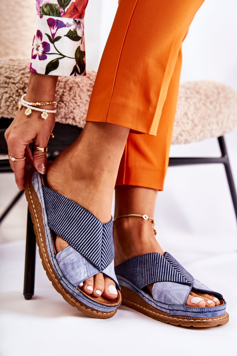 Klapki Skóra Profilowane Niebieskie Maciejka 04986-17