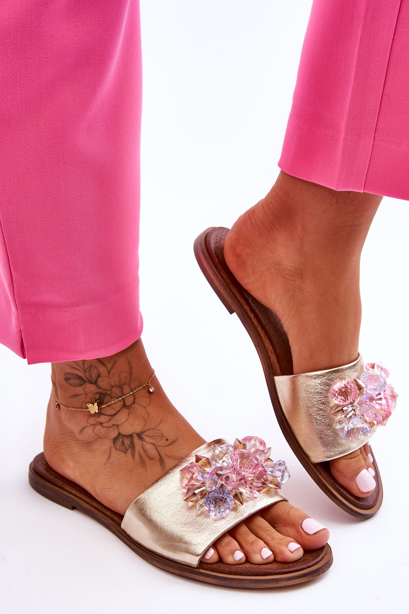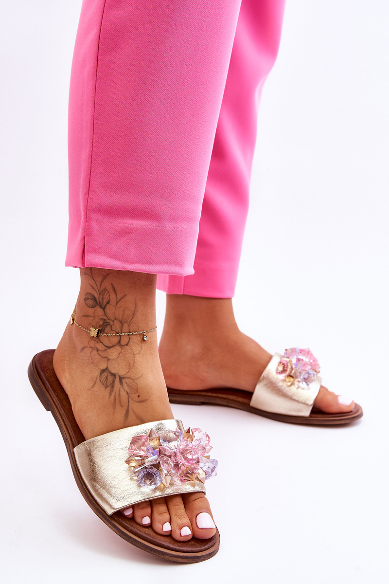 Klapki Skórzane Damskie Ozdoby Złote Nicole 2726