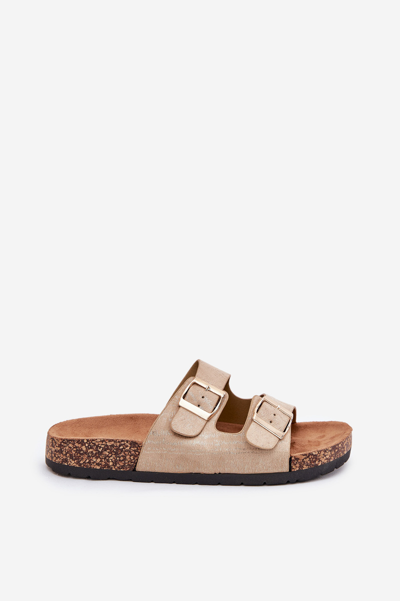 Klapki Wsuwane Damskie Korkowa Podeszwa Złote Cortina