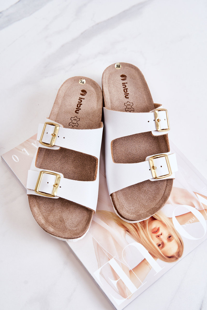Klapki Wsuwane Damskie Sprzączki Białe Inblu NM000028