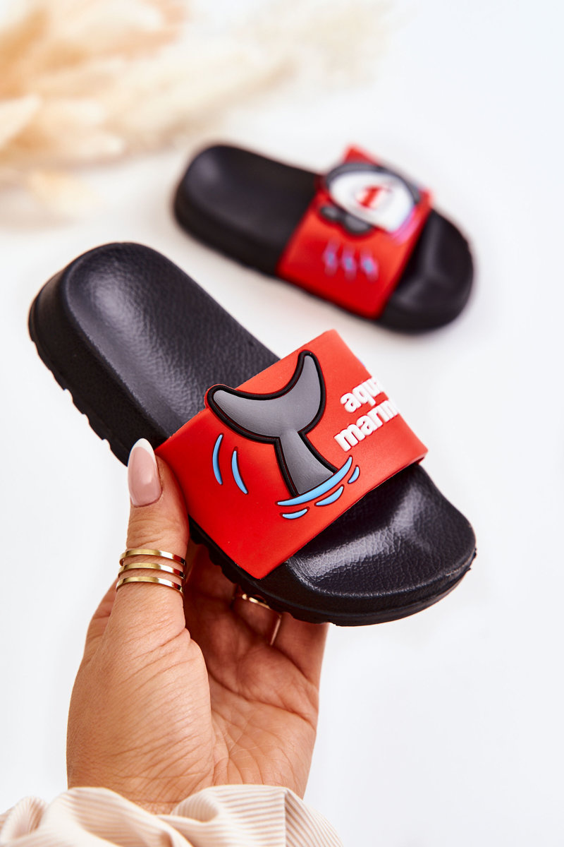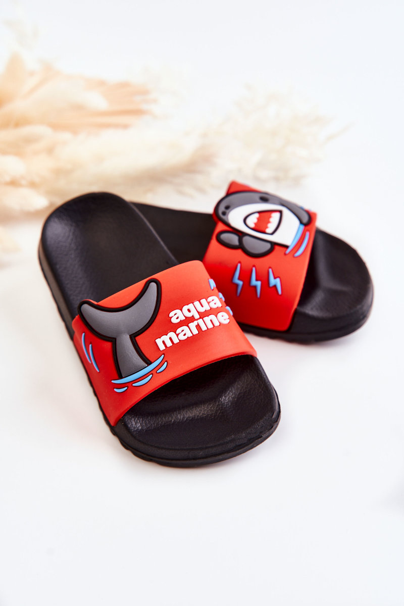 Klapki Wsuwane Lekkie Dziecięce Czerwono-Czarne Sharky