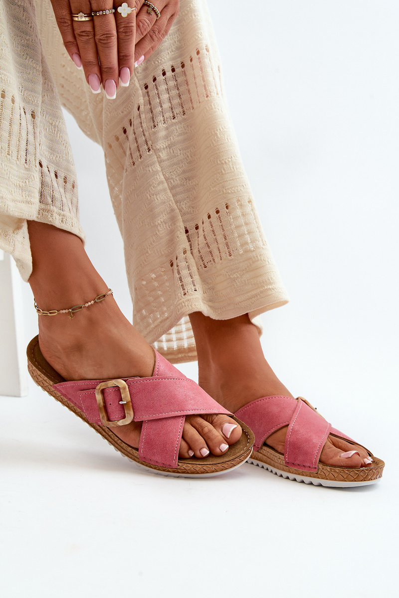 Klapki Wygodne Damskie Z Klamrą Różowe Inblu VO000012