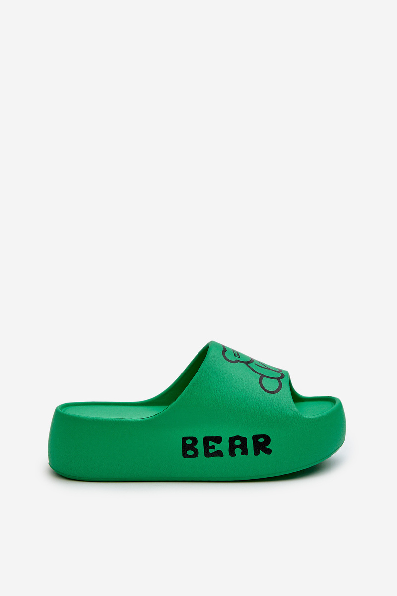 Klapki Z Misiem Na Masywnej Podeszwie Piankowe Damskie Zielone Lamira