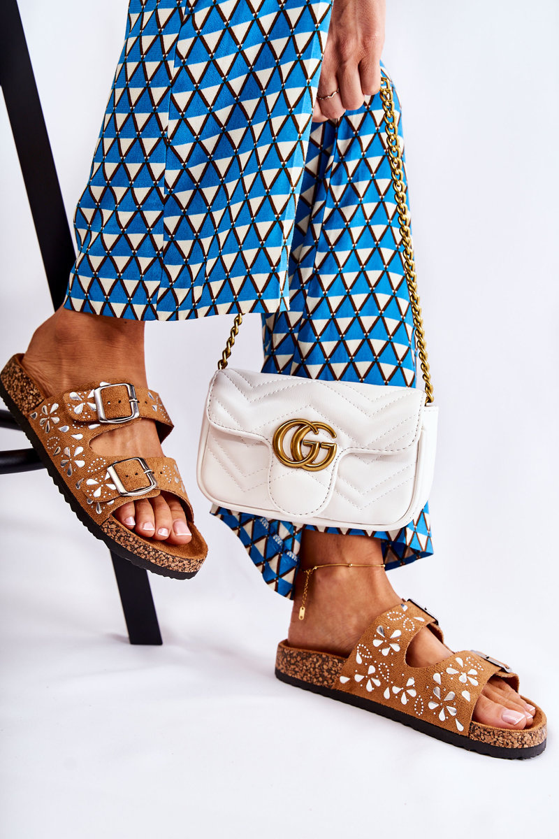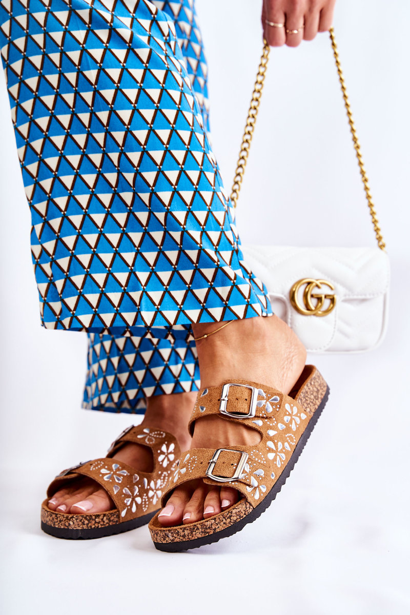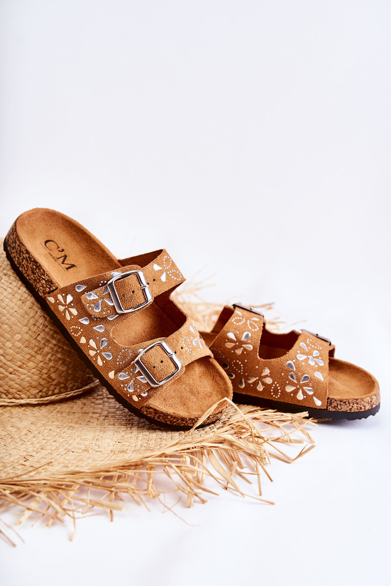 Klasyczne klapki o modnym fasonie pasują do wielu stylizacji! Idealne dla każdej kobiety ceniącej sobie komfort i wygodę na co dzień. Idealne na cieplejsze dni. Wykonane z eko zamszu. Buty posiadają dwa, regulowane paseczki ze sprzączkami. Wkładka wykonana także z eko zamszu. Osadzone na korkowej platformie i podeszwie z tworzywa sztucznego. Model klasyczny, wsuwany.