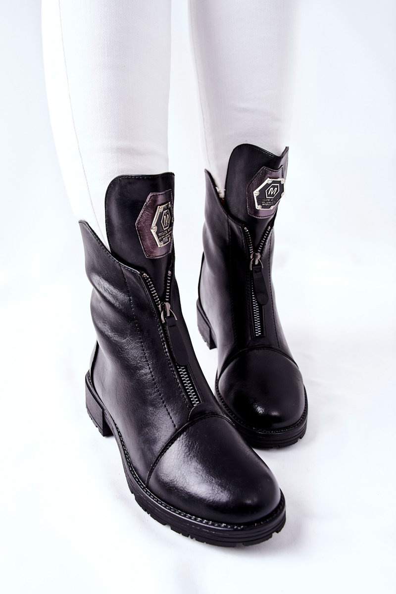 Model został wykonany z najwyższej jakości skóry ekologicznej. Wysoka cholewka z suwakiem zapewnia łatwe zakładanie oraz idealne dopasowanie się do nogi. Wnętrze ocieplane kocem obuwniczym. Ozdobny emblemat na języku. Dzięki niskiemu obcasowi, botki są bardzo stabilne. Przy wyborze rozmiaru prosimy sugerować się tabelą rozmiarów.