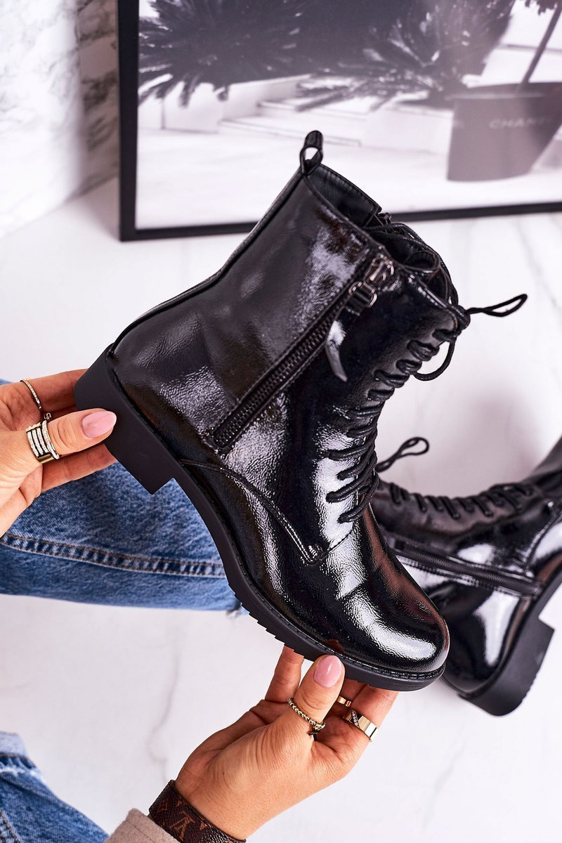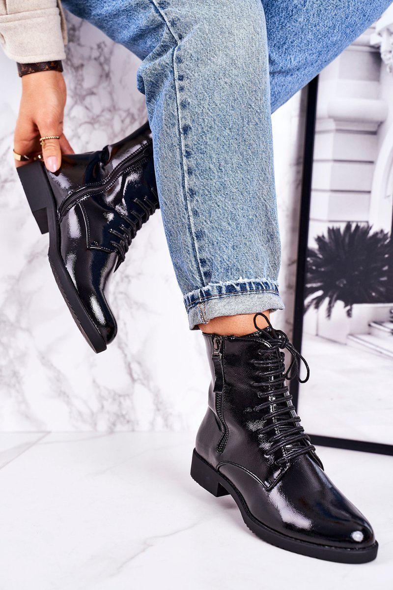 Klasyczne Damskie Ocieplane Botki Lakierowane Czarne Simplicity