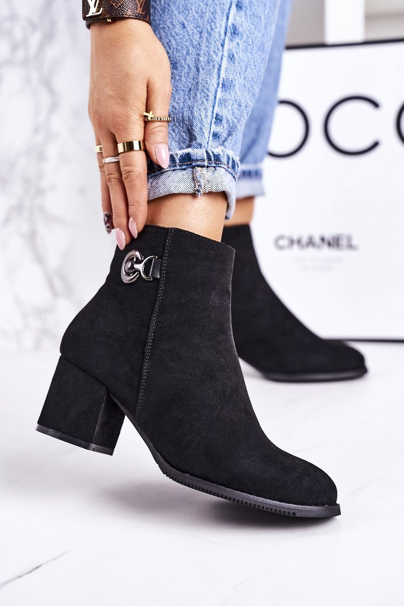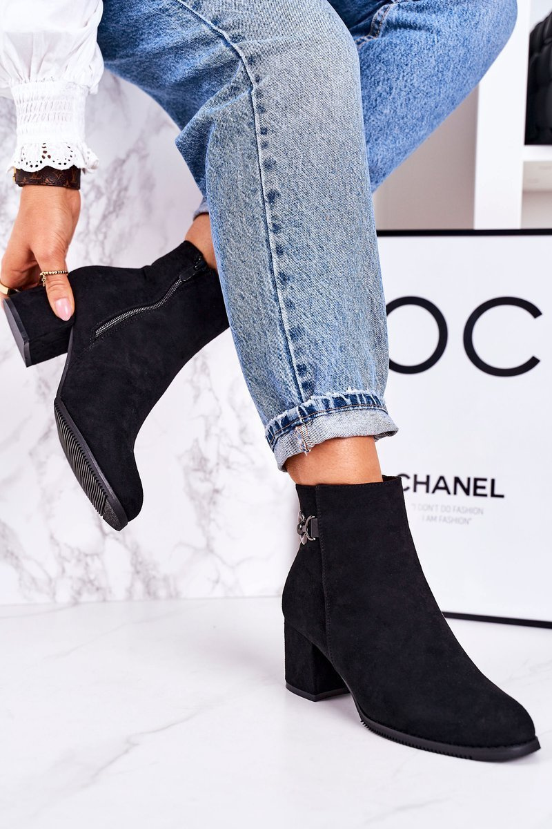 Klasyczne Damskie Ocieplane Botki Na Słupku Czarne Success