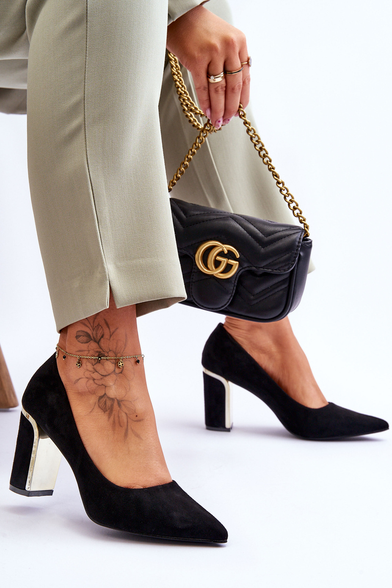 Klasyczne Zamszowe Czółenka Ozdobny Słupek Czarne Elizabeth