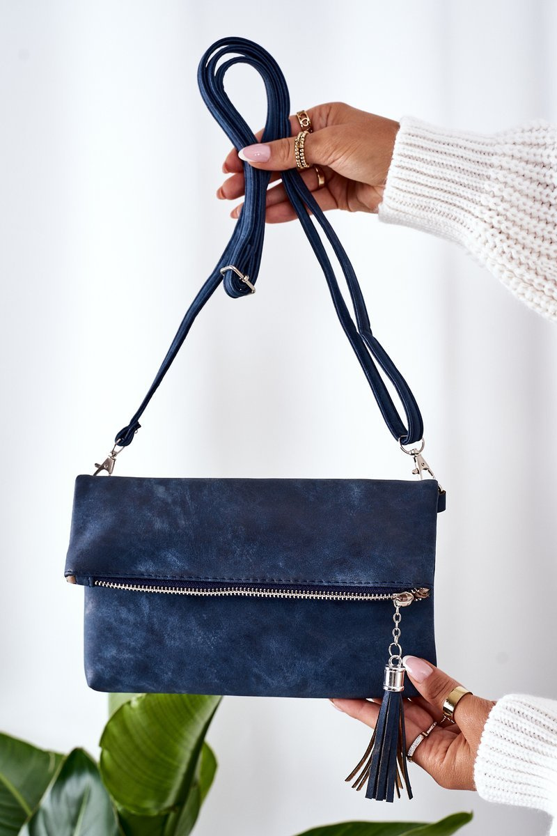 Kopertówka Z Odpinanym Paskiem I Frędzlami Niebieska