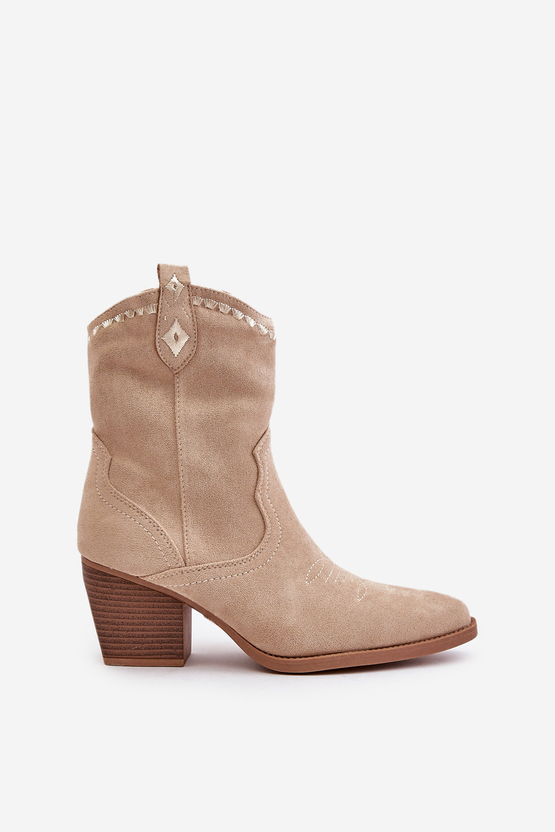 Kowbojki Botki Obcas Słupek Eko Zamsz Jasnobeżowe Narinae