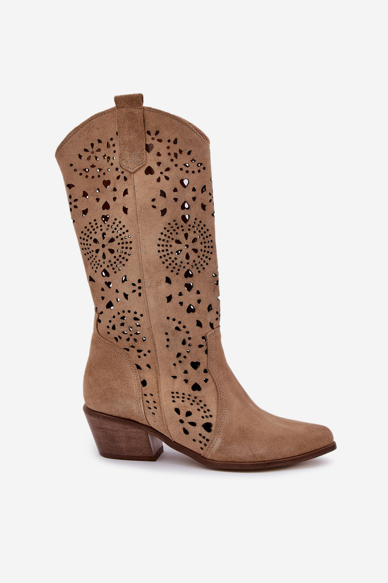 Kozaki Ażurowe Do Połowy Łydki Zamsz Zazoo 3396 Beżowe