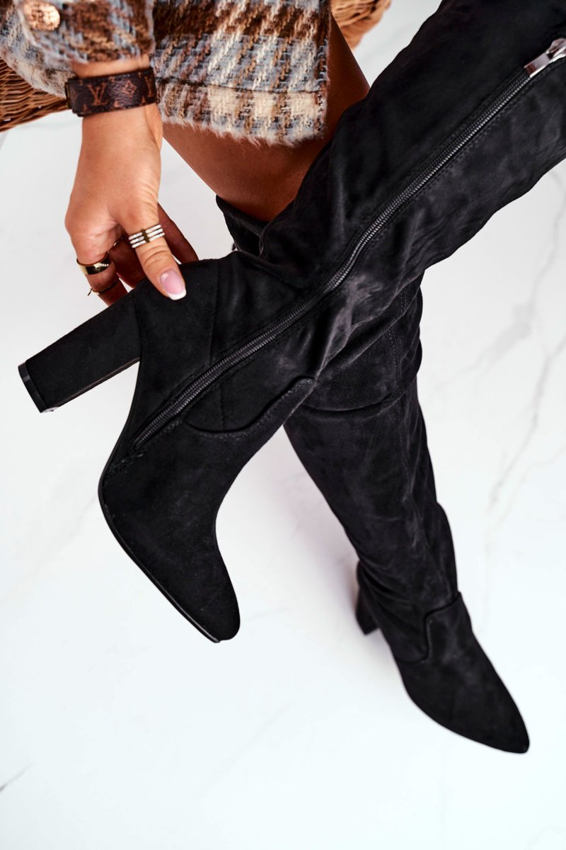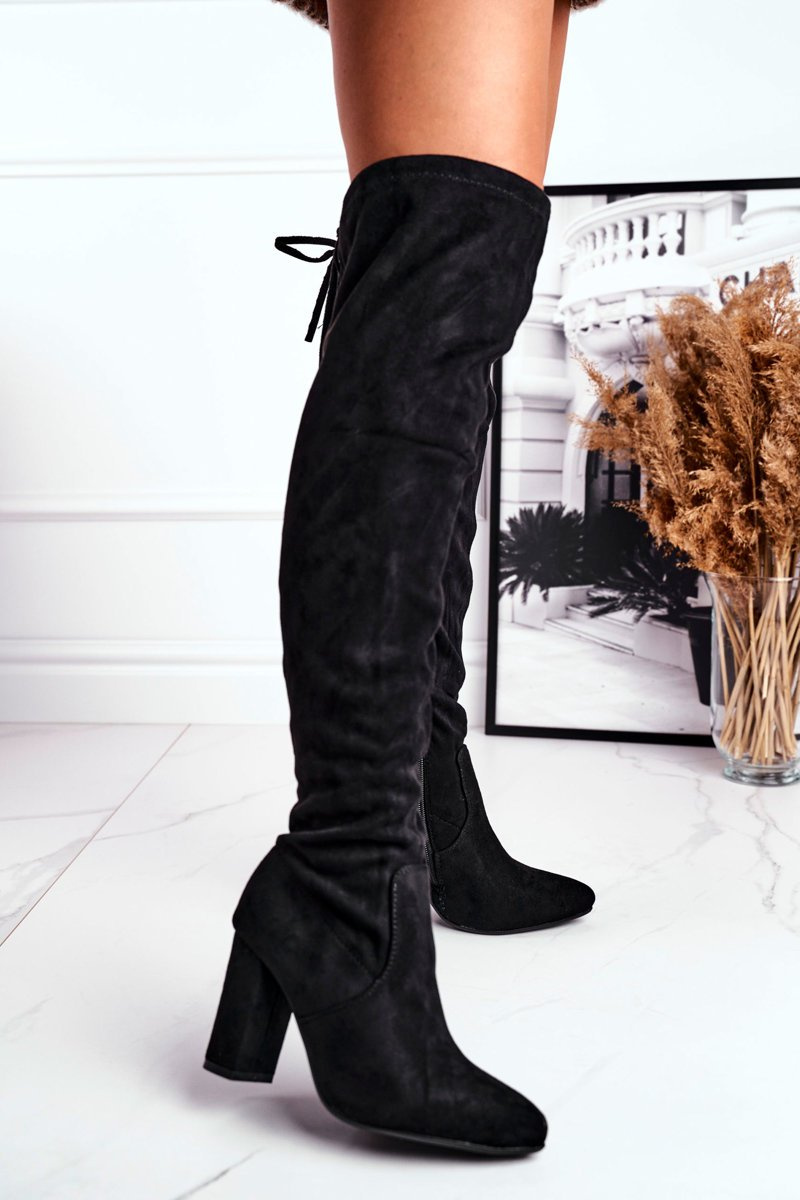 Kozaki Damskie Do Kolana Eko-Zamsz Czarne First Time
