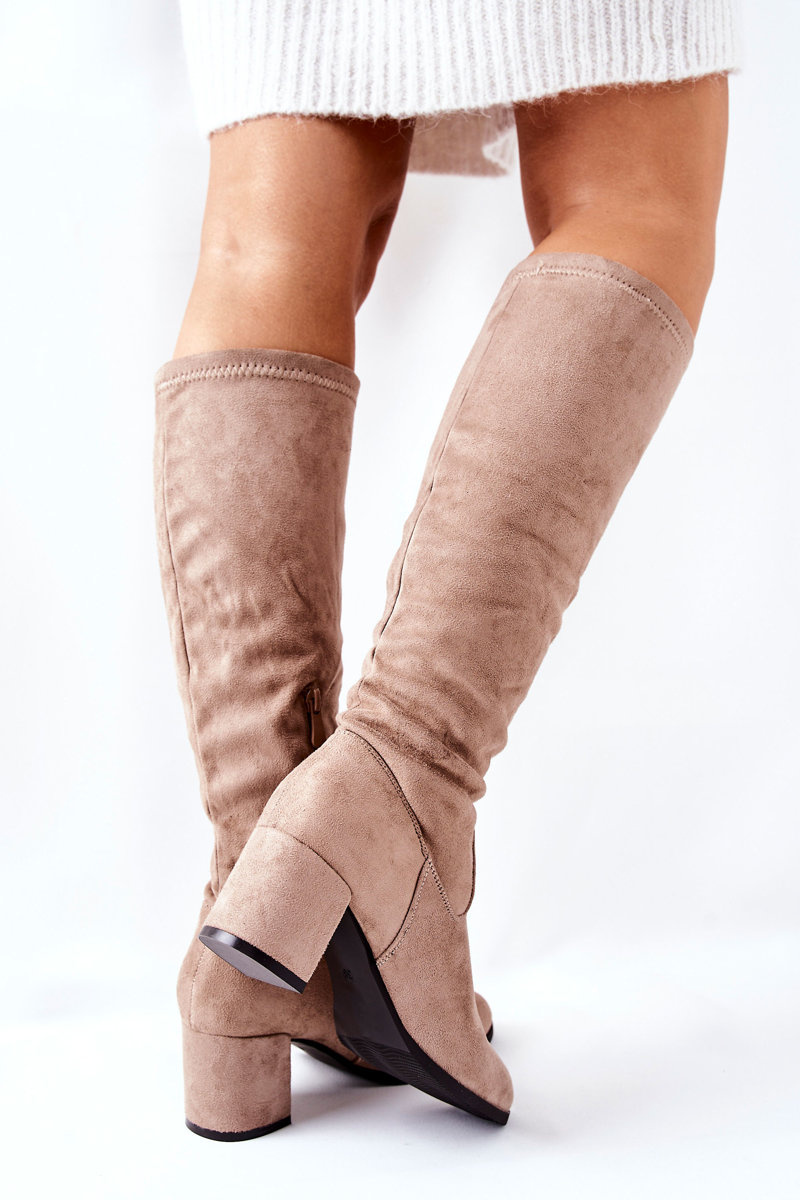 Kozaki Damskie Na Obcasie Zamszowe Beżowe Newferry