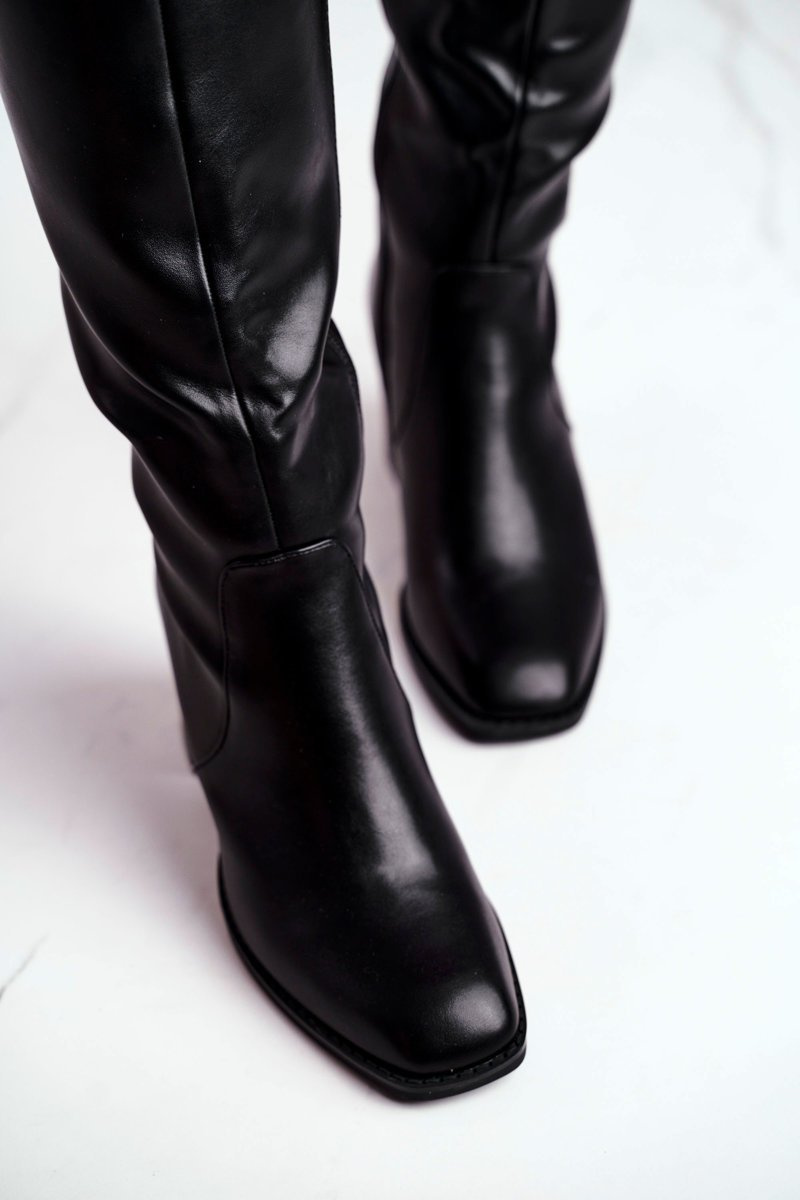 Kozaki Damskie Na Słupku Ciepłe Czarne Veronique