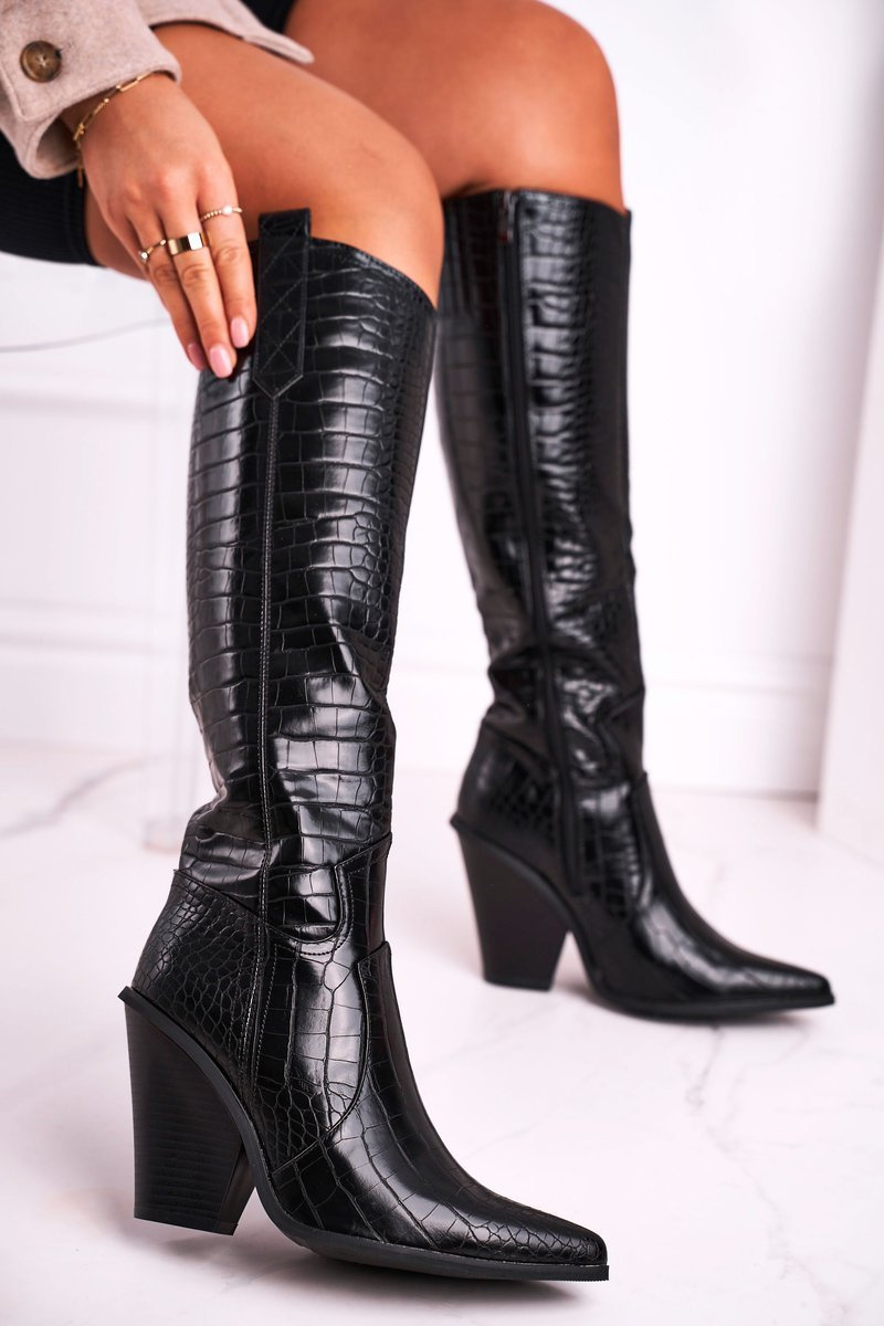 Klasyczne czarne kozaki, które będą dopełnieniem wielu wspaniałych stylizacji. Długi płaszcz, rajstopy i krótkie szorty - wyobraź sobie tą wspaniałą jesienną stylizację i kup je już teraz! Wnętrze kozaków ocieplone zostało kocem obuwniczym, a zakładanie ułatwi nam wszyty na boku suwak. Góra cholewki posiada rozporek, umożliwiający poszerzenie cholewki. Przy wyborze rozmiaru prosimy kierować tabelą rozmiarów.