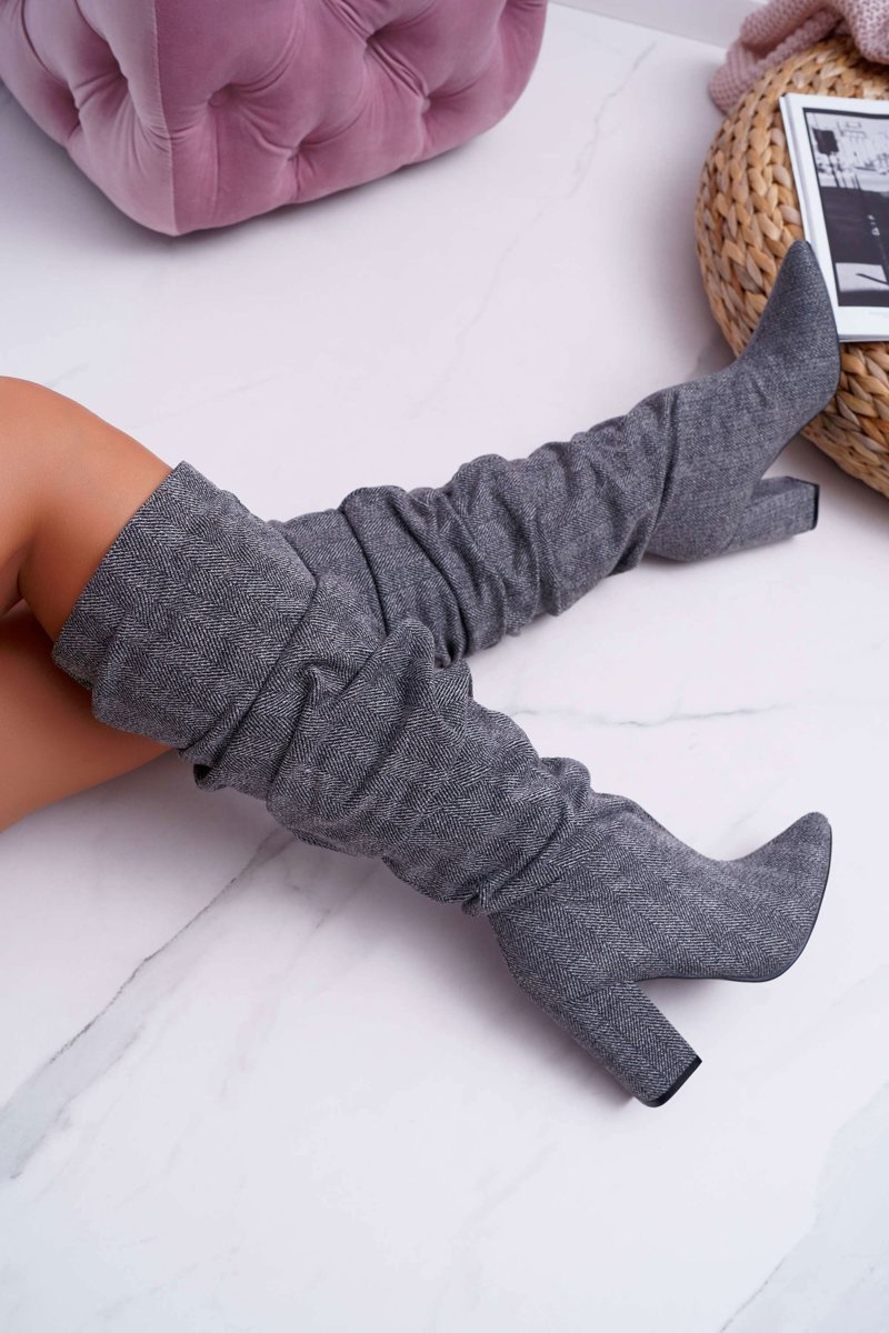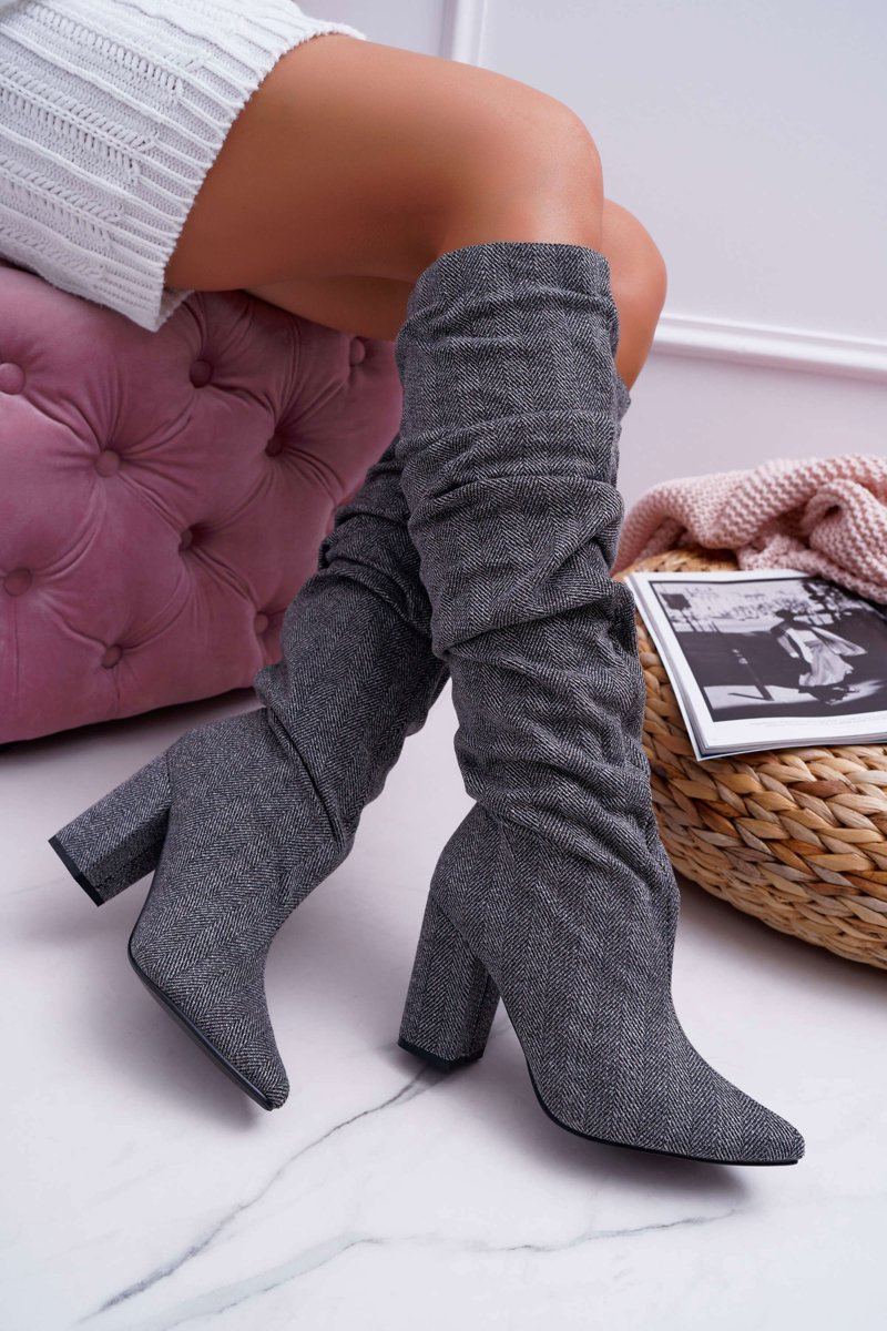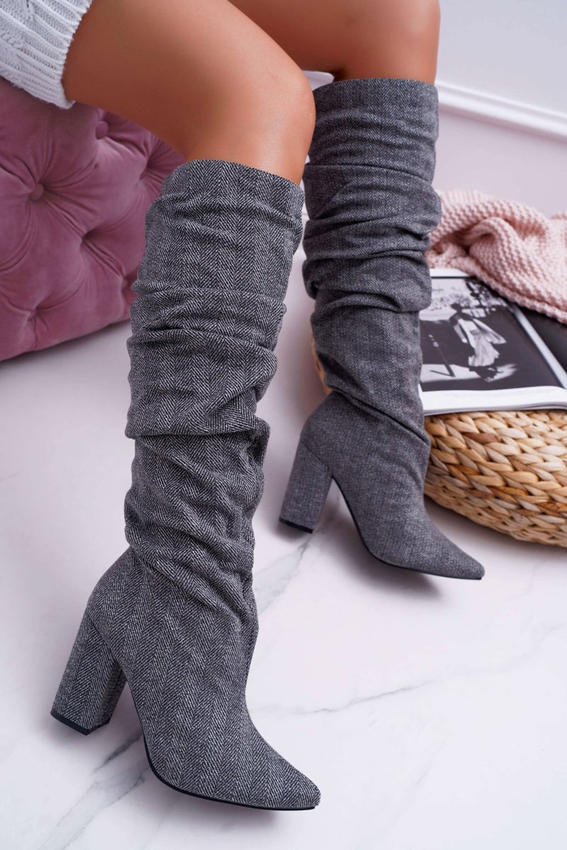 Kozaki Damskie Na Słupku Do Kolan Szare Termen