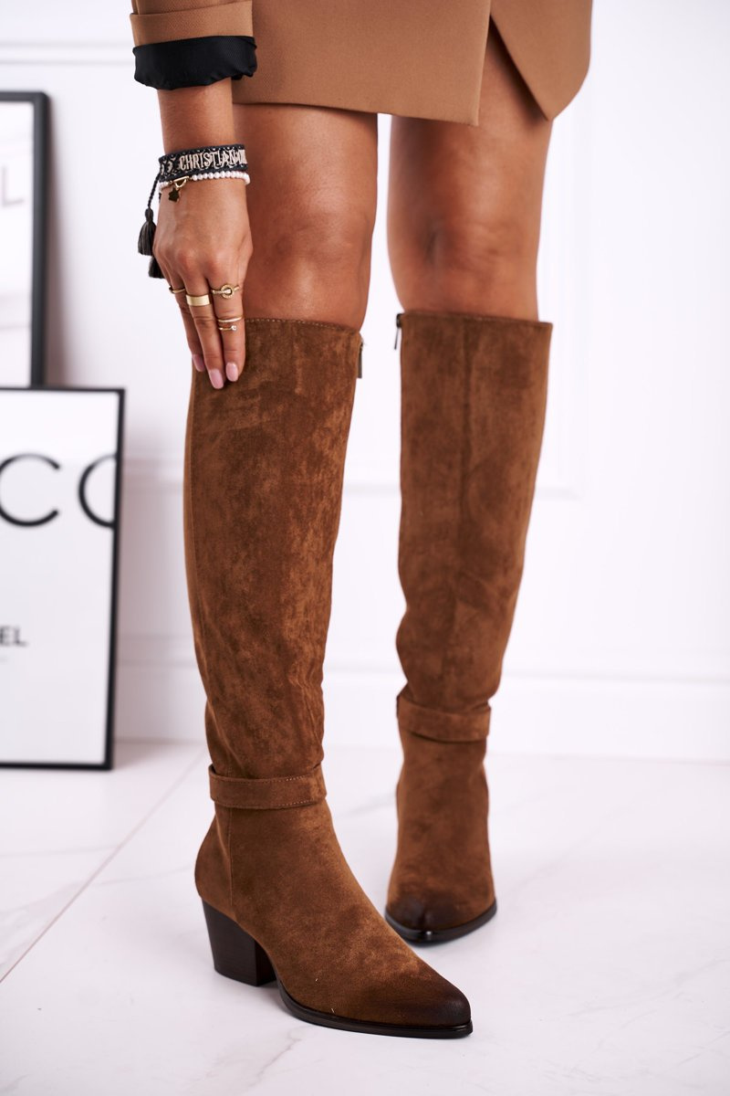Kozaki Damskie Na Słupku Zamszowe Brązowe Nevermind