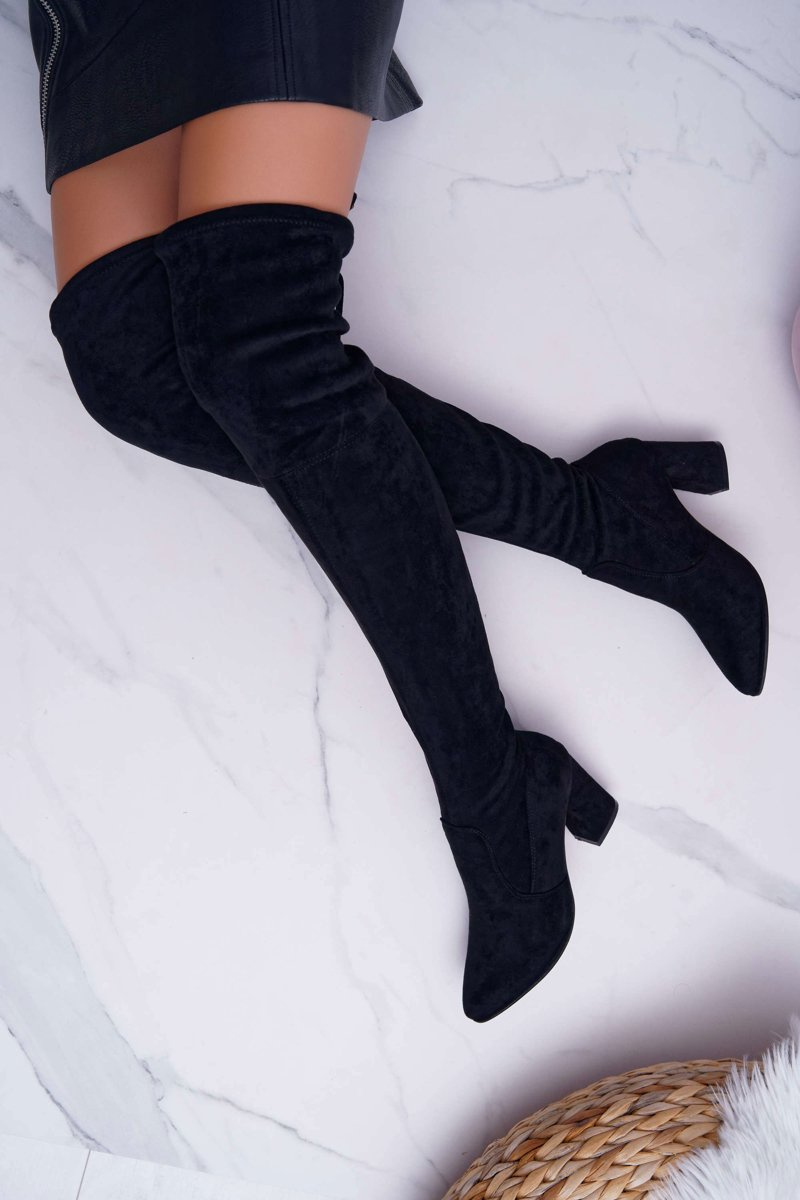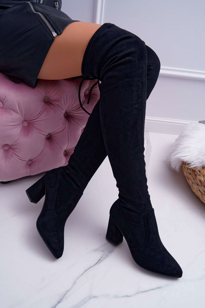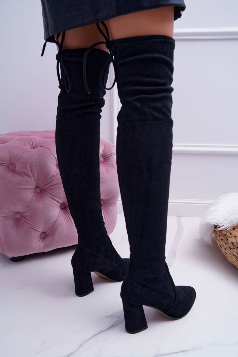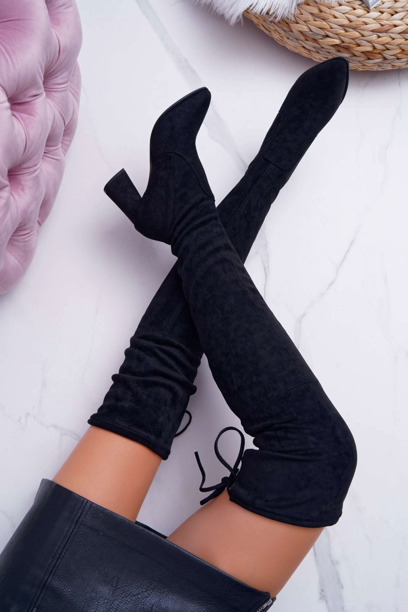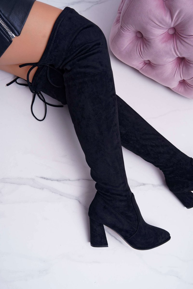 Kozaki Damskie Na Słupku Zamszowe Czarne Bernet