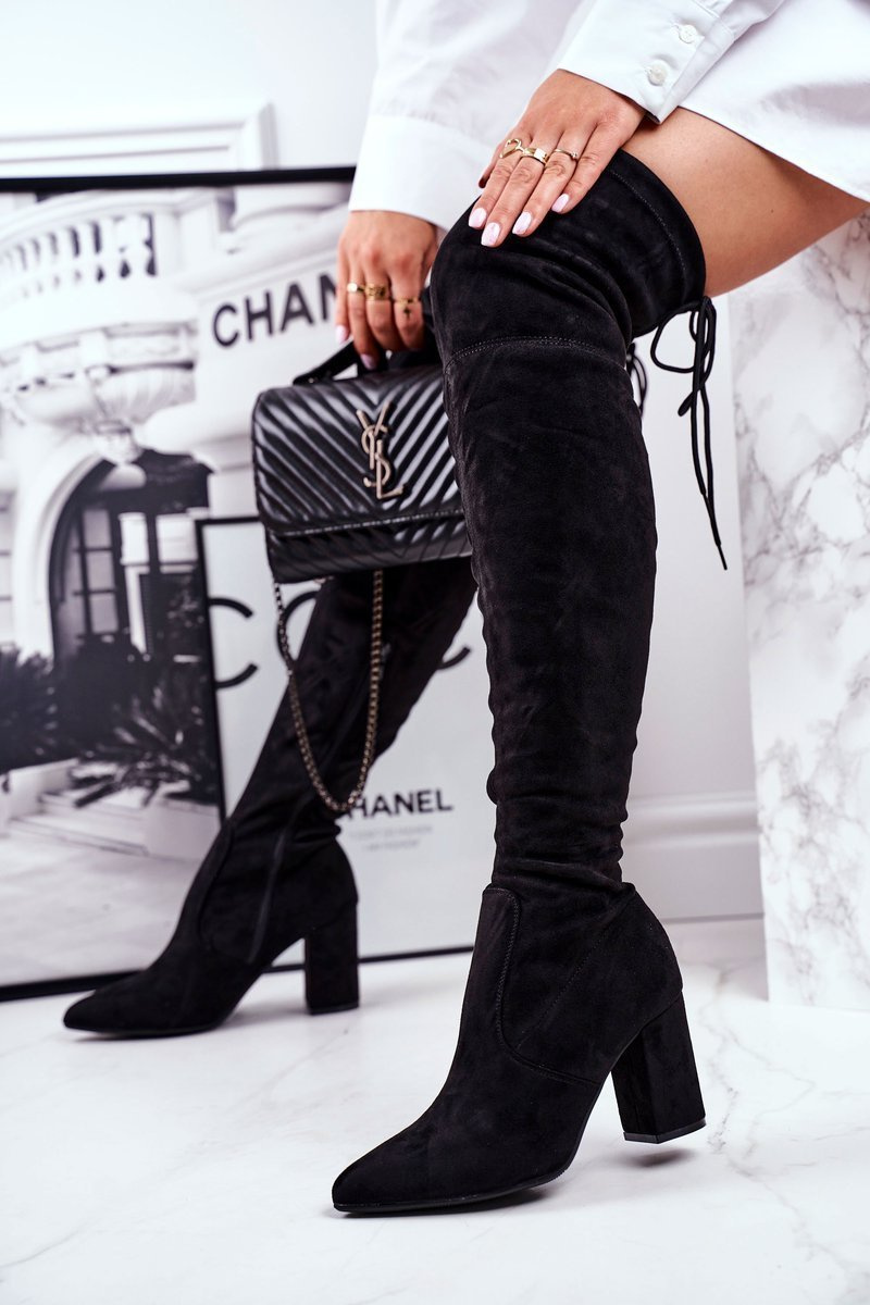 Kozaki Damskie Na Słupku Zamszowe Czarne Milwa