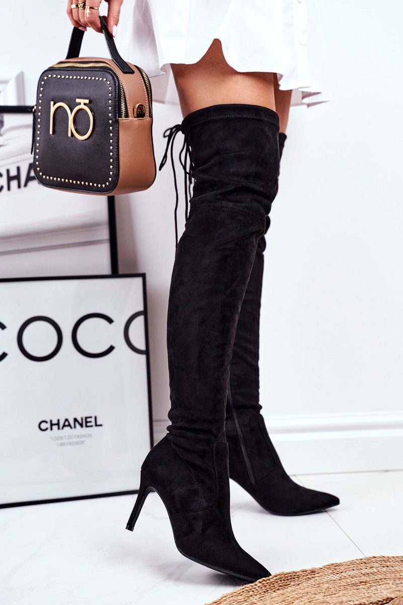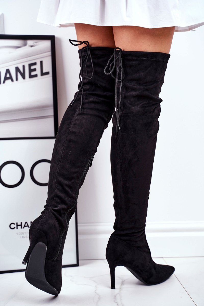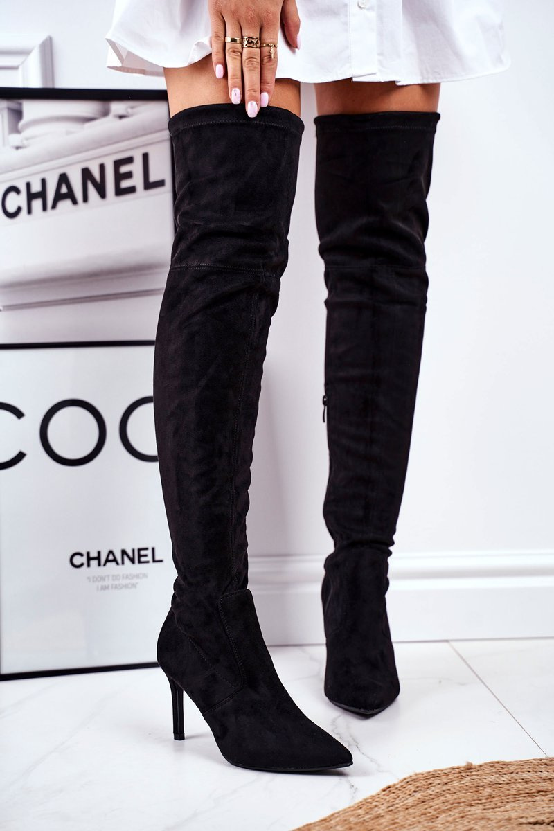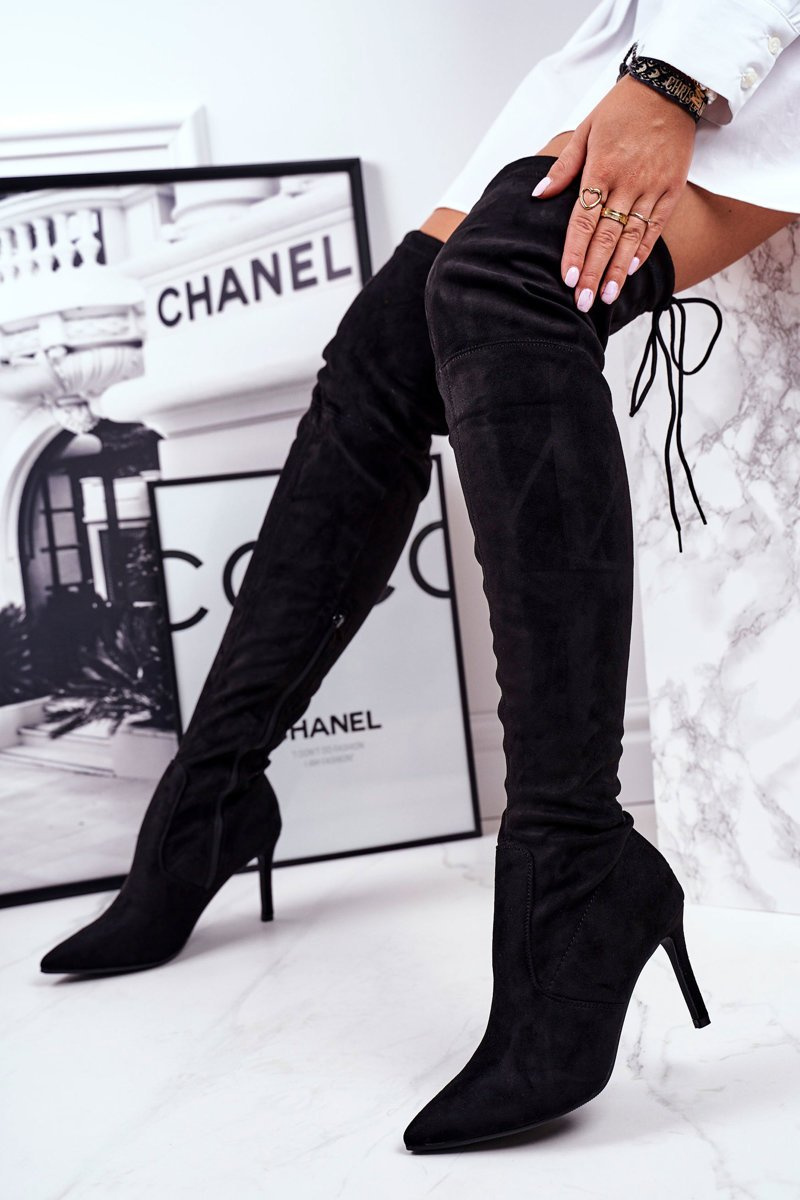 Kozaki Damskie Na Szpilce Zamszowe Czarne Huanto