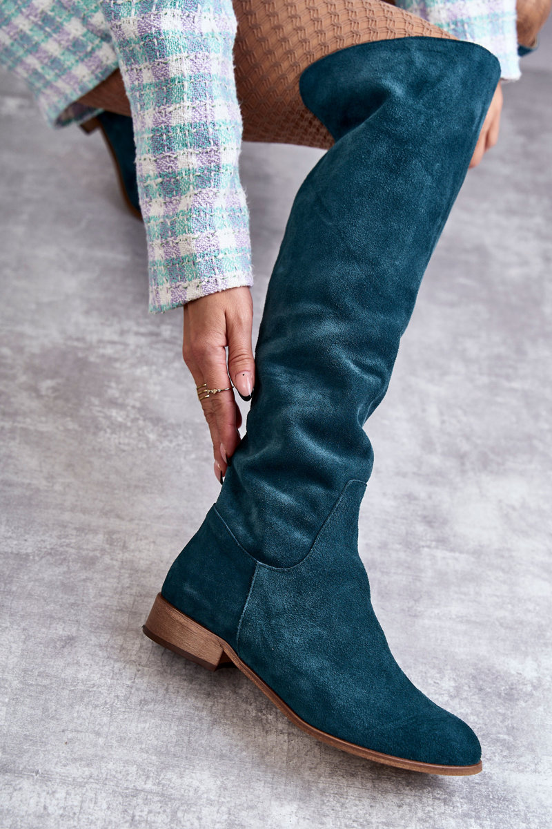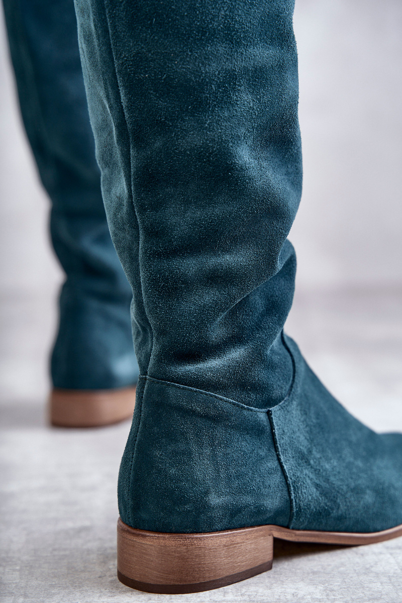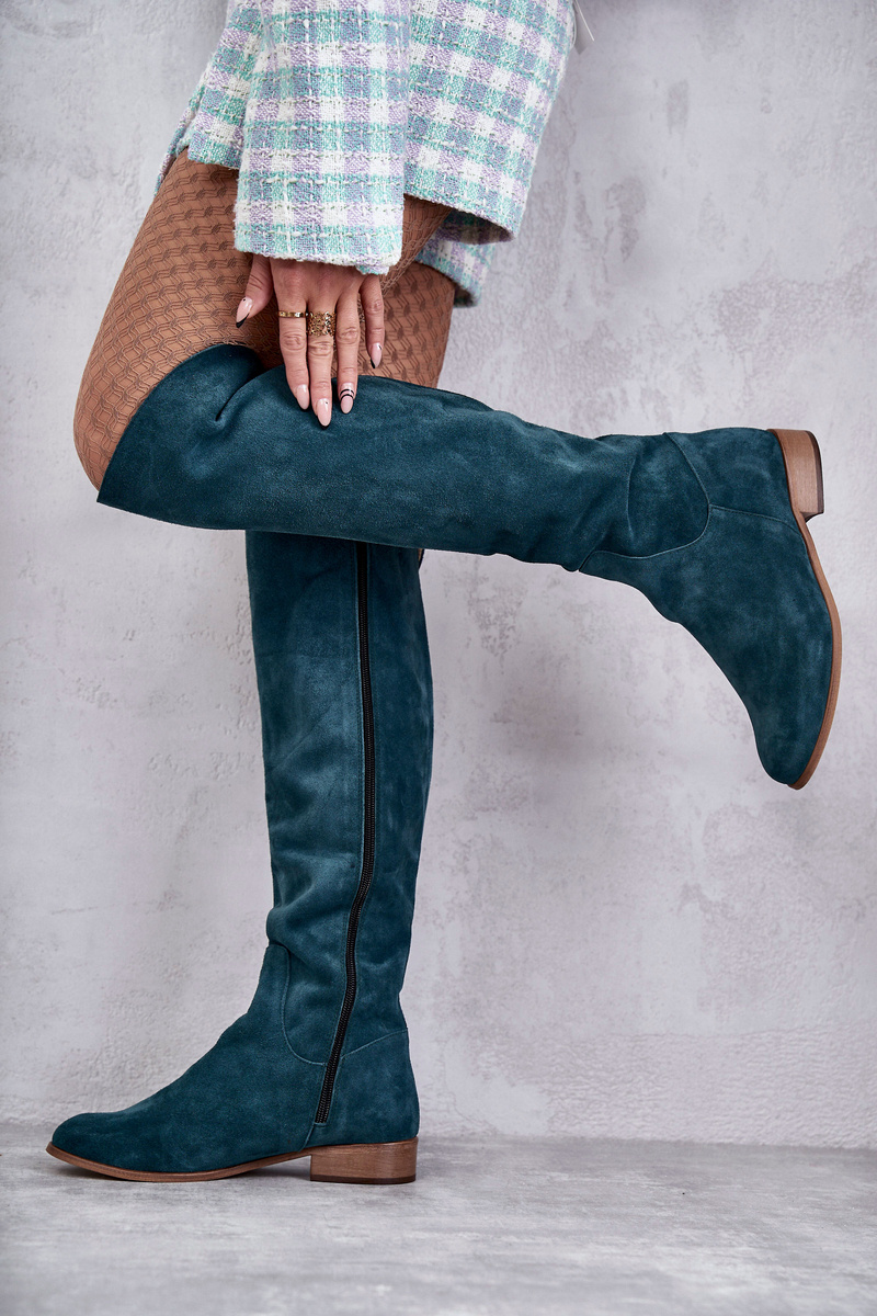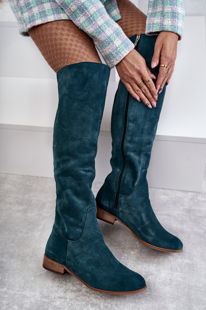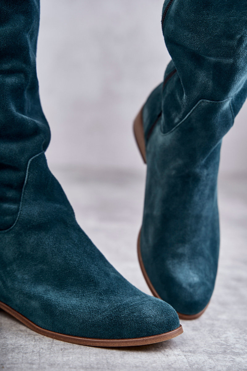 Kozaki Damskie Ocieplane Płaski Obcas Zielone Isolde
