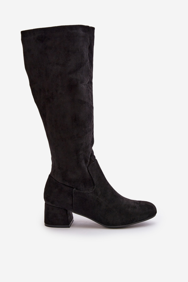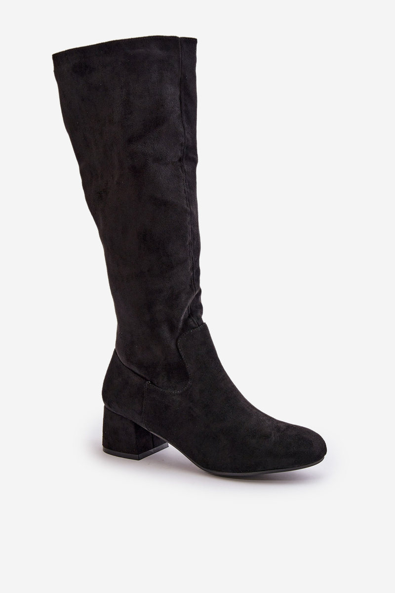 Kozaki Damskie Przed Kolano Na Zamek Eko Zamszowe Czarne Elitara